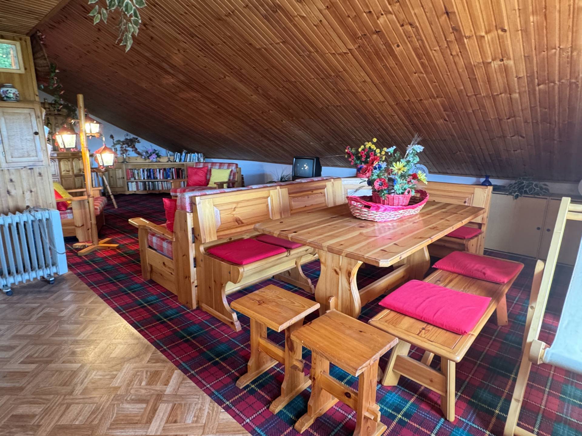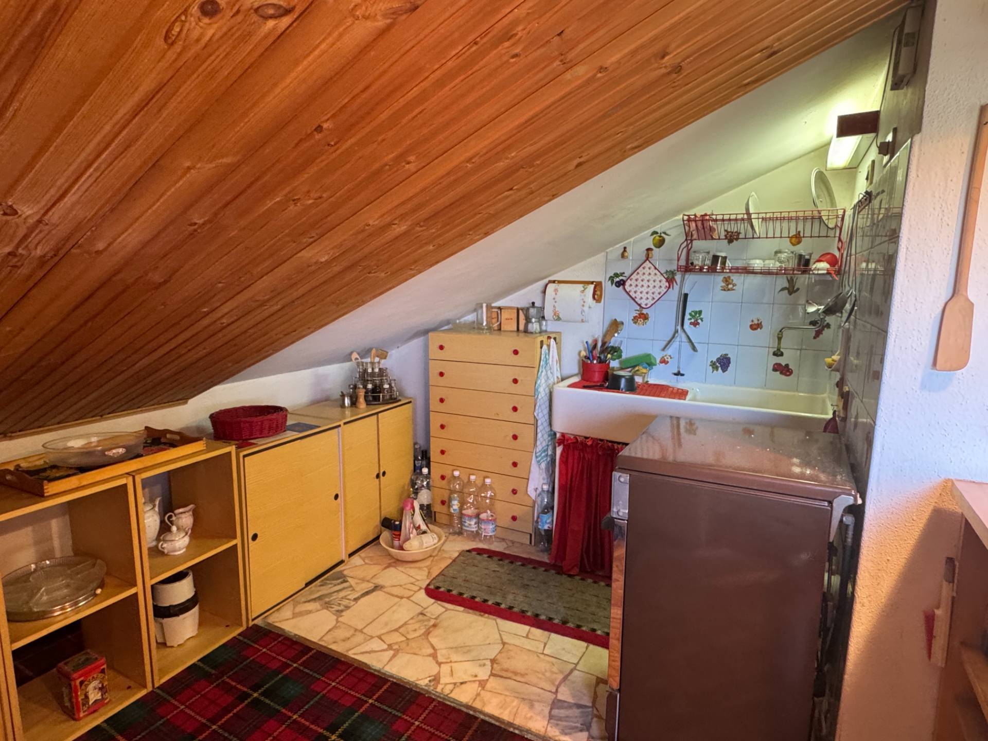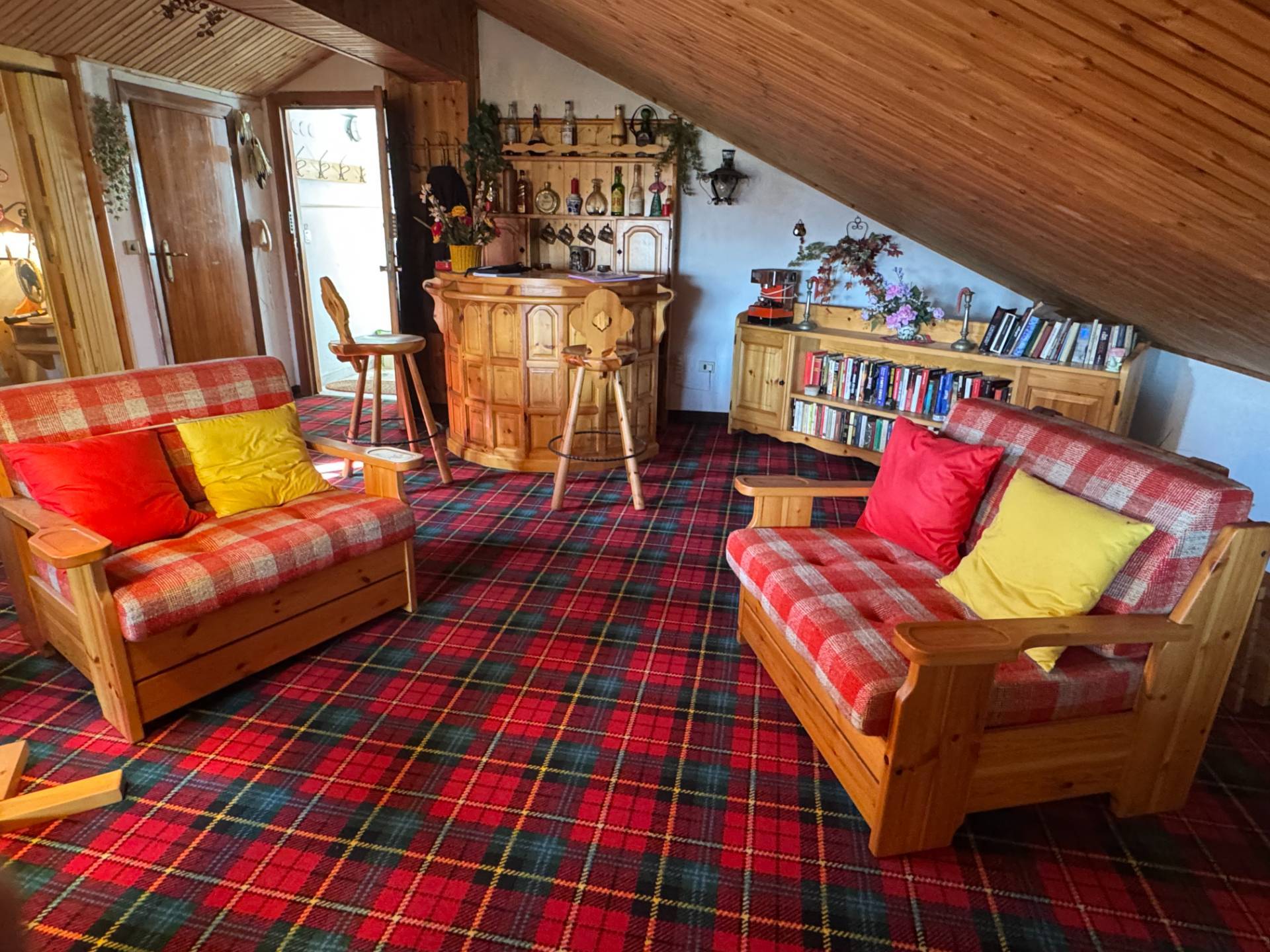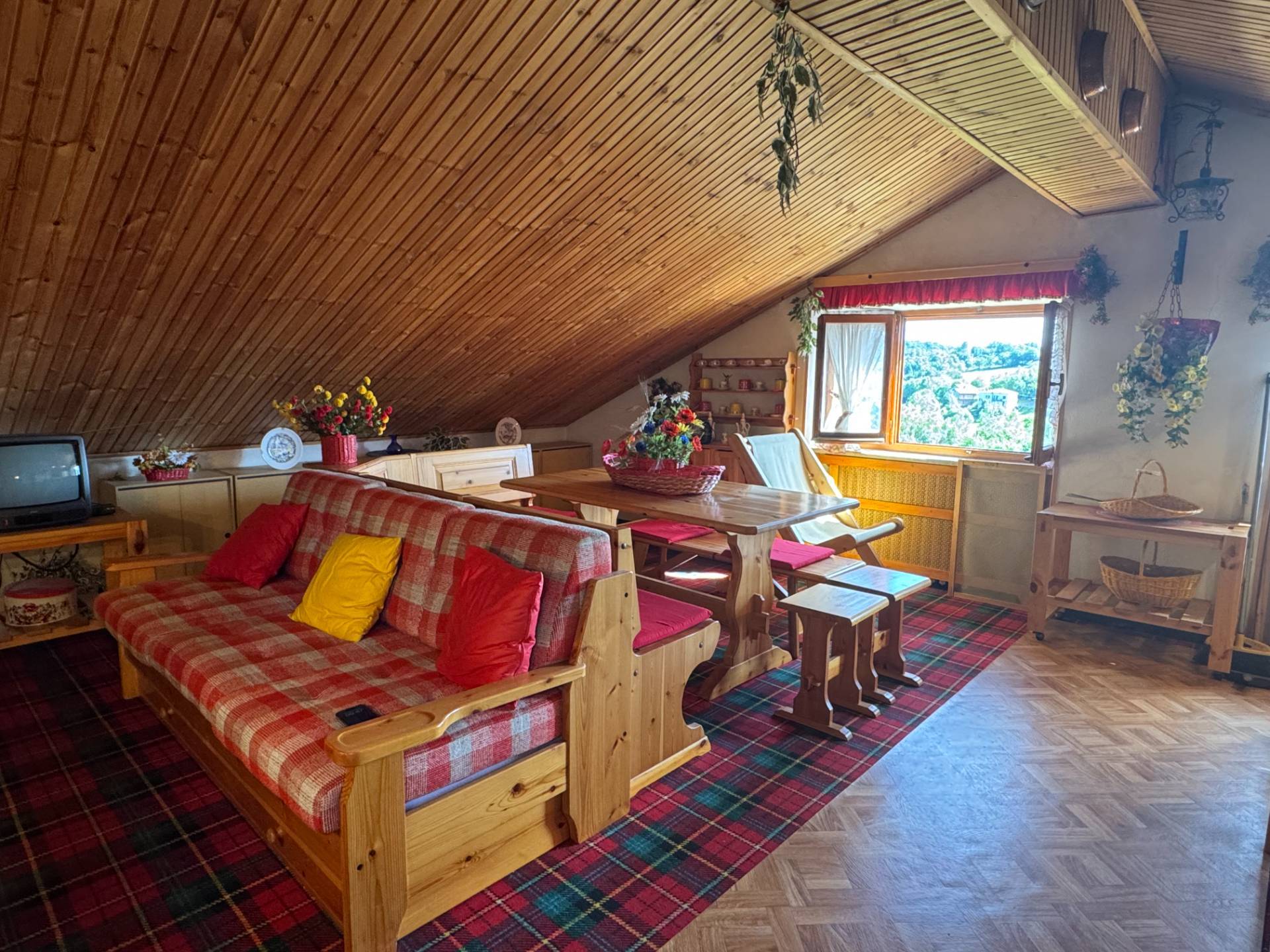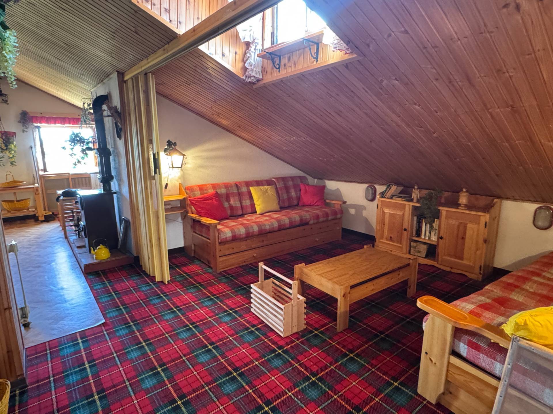 CARATTERISTICHE DELLIMMOBILE: - Ampia zona giorno/notte con divani letto, zona relax, angolo bar e mobili in legno su misura - Soffitto mansardato rivestito in legno - Pavimento in moquette scozzese, perfettamente in tema con latmosfera alpina - Arredi curati nei dettagli, con libreria, mobiletto e oggetti decorativi inclusi - Riscaldamento autonomo con stufa a legna - Spese condominiali contenute - Ottima esposizione - Vista panoramica sui boschi e le montagne circostanti Serra di Pamparato una localit montana tranquilla, a circa 1000 m di altitudine, famosa per la natura incontaminata, laria pura e la pace. meta ideale per escursioni a piedi o in e-bike, gite nei boschi per funghi o castagne.