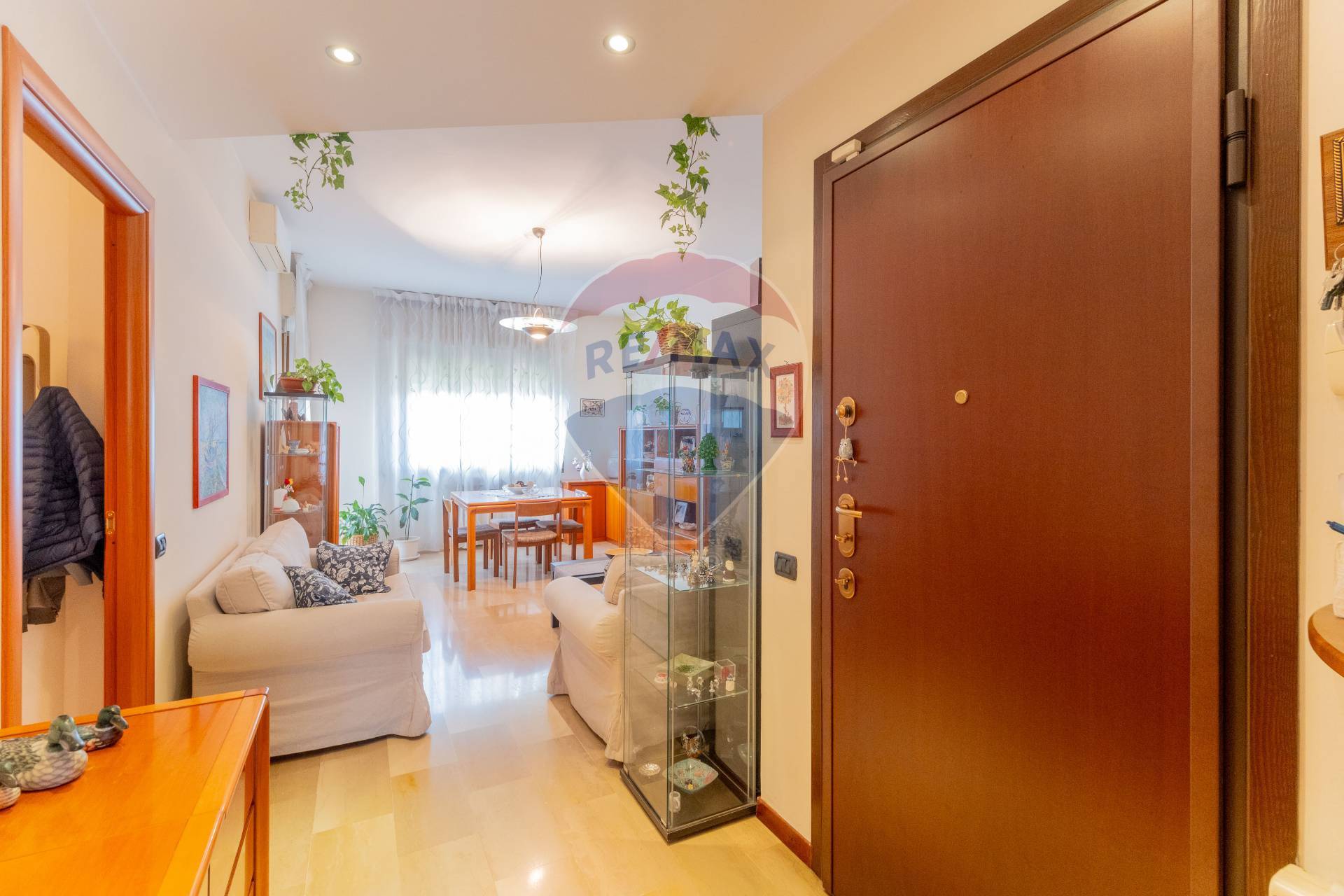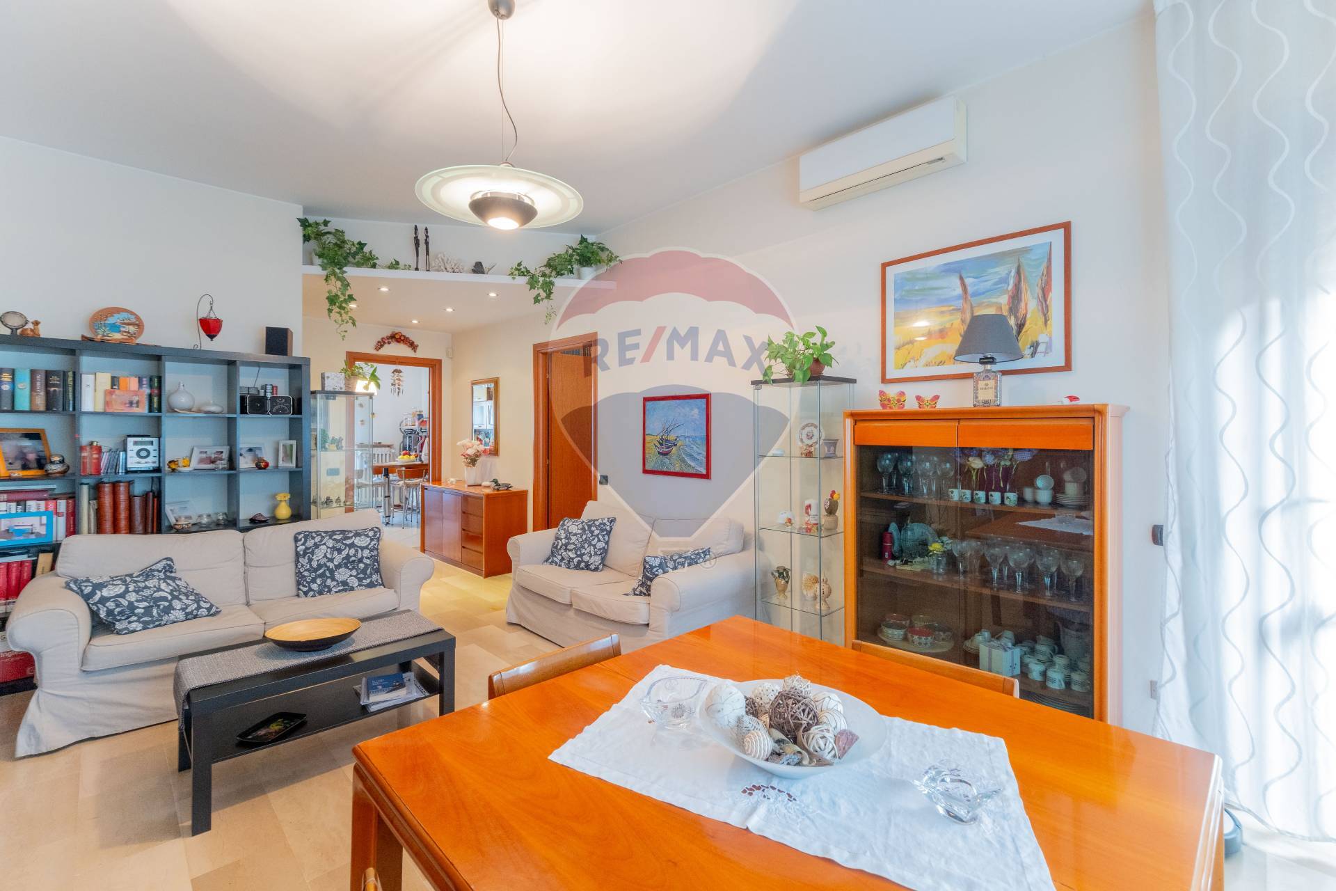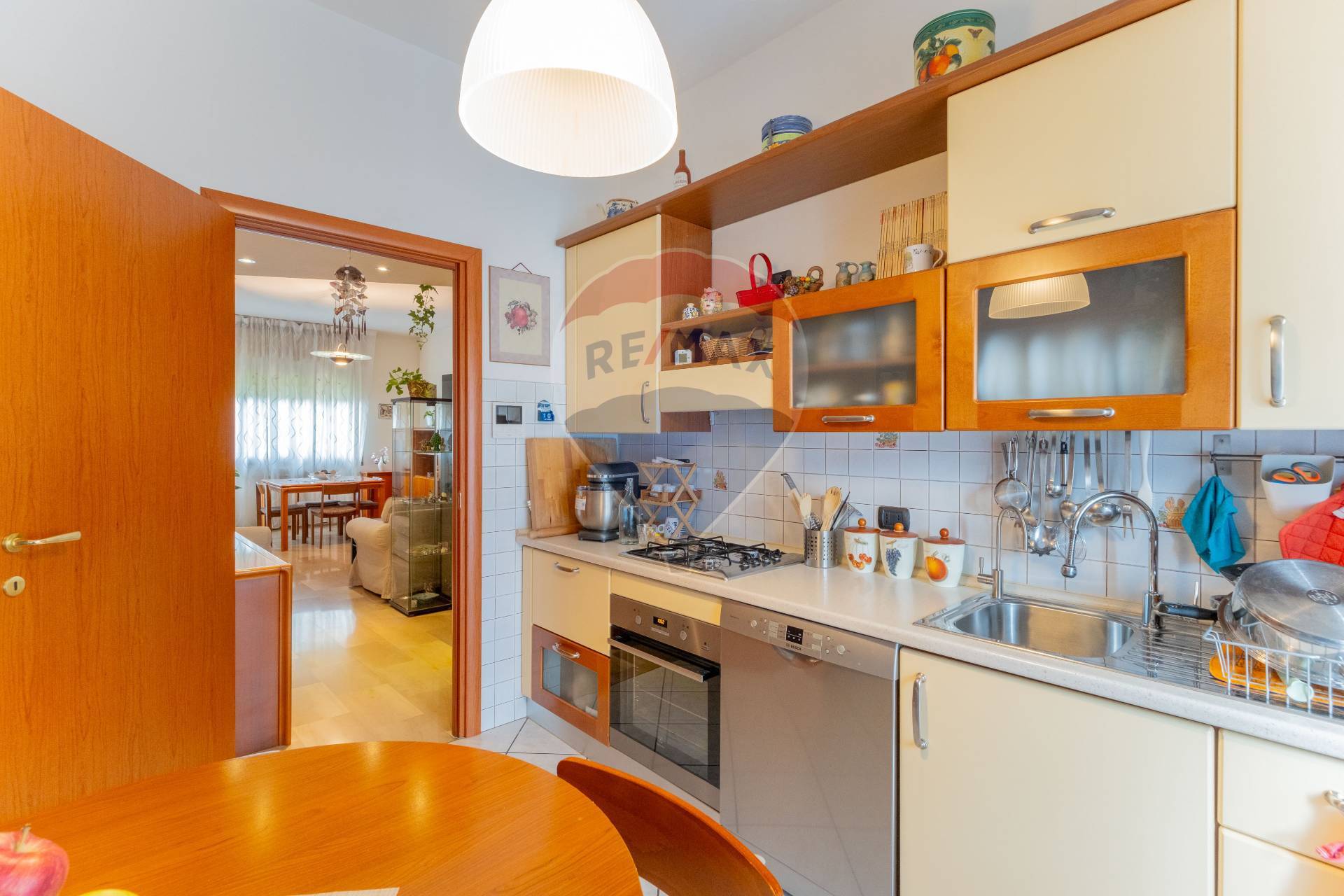 L'ingresso ci porta nella zona soggiorno climatizzata e con accesso al terrazzo coperto, il disimpegno collega con la cucina abitabile, una porta finestra permette di accedere al balcone di servizio; nella zona notte si trovano un comodo ripostiglio, la camera matrimoniale con affaccio sul secondo balcone e la seconda camera, i due bagni, uno con doccia e l'altro con vasca idromassaggio e sanitari sospesi.