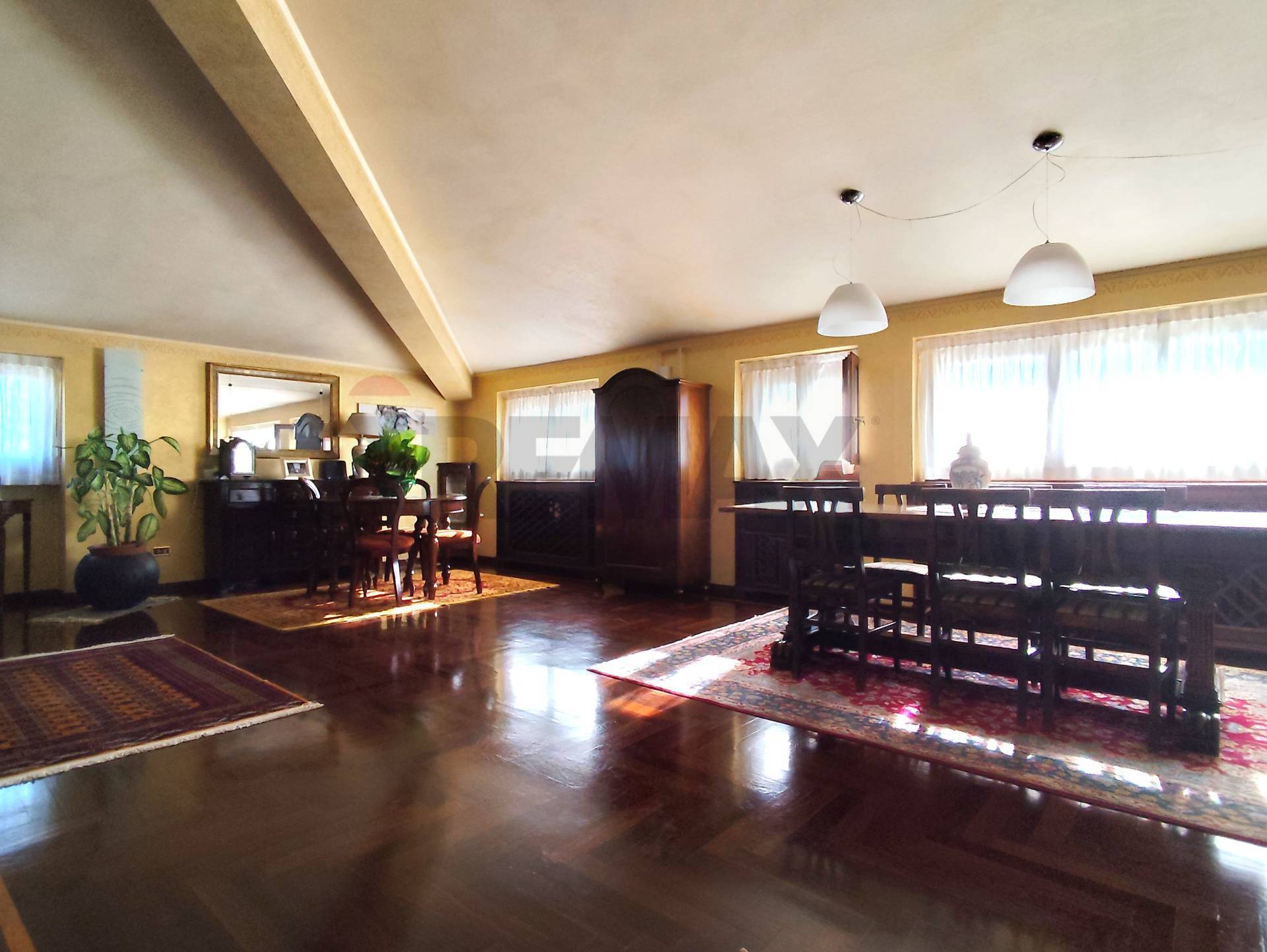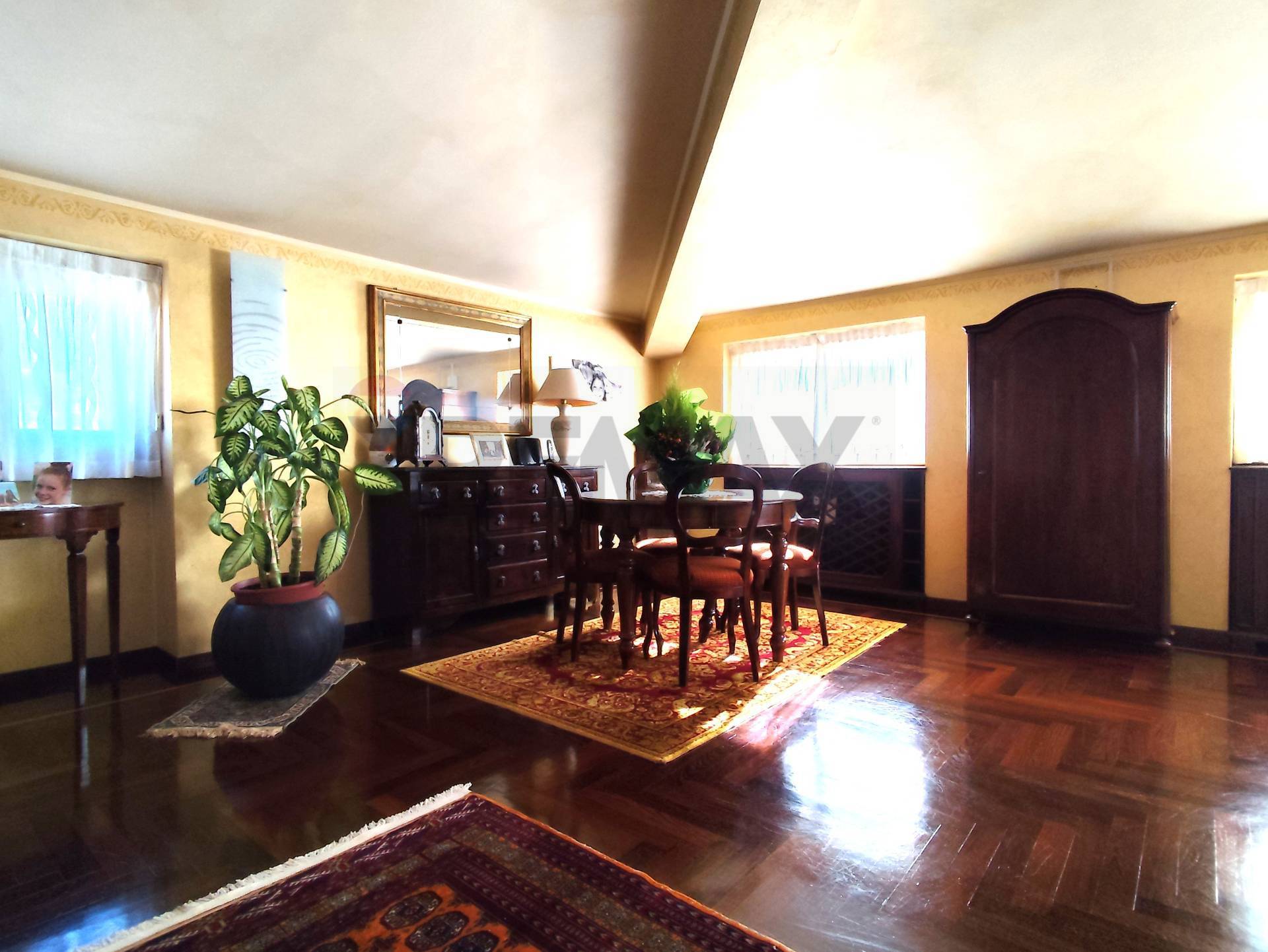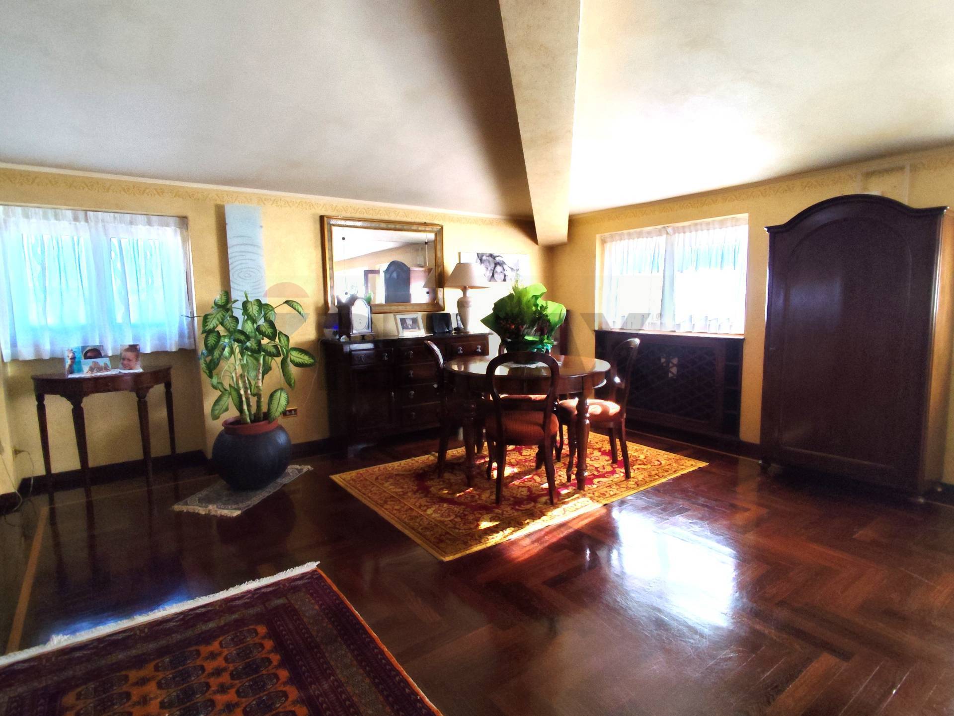 In un elegante edificio ,si trova questo raffinato appartamento all'ultimo piano,caratterizzato da ampi spazi e finiture classiche e di ***.*******.** su due livelli,con ascensore che serve entrambi i piani,l'immobile offre anche la possibilit di essere diviso in due unit ***.*******.** piano superiore l'ampio ingresso conduce a un salone triplo completamente finestrato e molto luminoso,arricchito dal calore di un camino al centro dell'ambiente dedicato al salotto.A completare questo piano ,uno studio,un grande locale lavanderia e uno spazioso ***.*******.** cucina abitabile dallo stile moderno dotata di un bel balcone da cui si pu godere di un bellissimo panorama ***.*******.** gli ambienti sono organizzati con cura ai dettagli, non mancano spazi adibiti a cappottiera e ***.*******.** da scala interna si accede al pano inferiore dove troviamo tre spaziose camere da letto e un secondo bagno completo di vasca e doccia e rifinito con materiali di pregio,anche a questo piano si trova un'ampio balcone.L'appartamento caratterizzato da pavimenti in parquet che conferiscono calore e stile e le finiture classiche ed eleganti aggiungono un tocco di raffinatezza all'intera abitazione,servita da impianto di ***.*******.** la propriet un box,la cantina e un grande parcheggio condominiale privato dove possibile parcheggiare la seconda auto. La posizione dell'immobile permette di raggiungere a piedi il centro e tutti i principali servizi. Contatta l'inserzionista