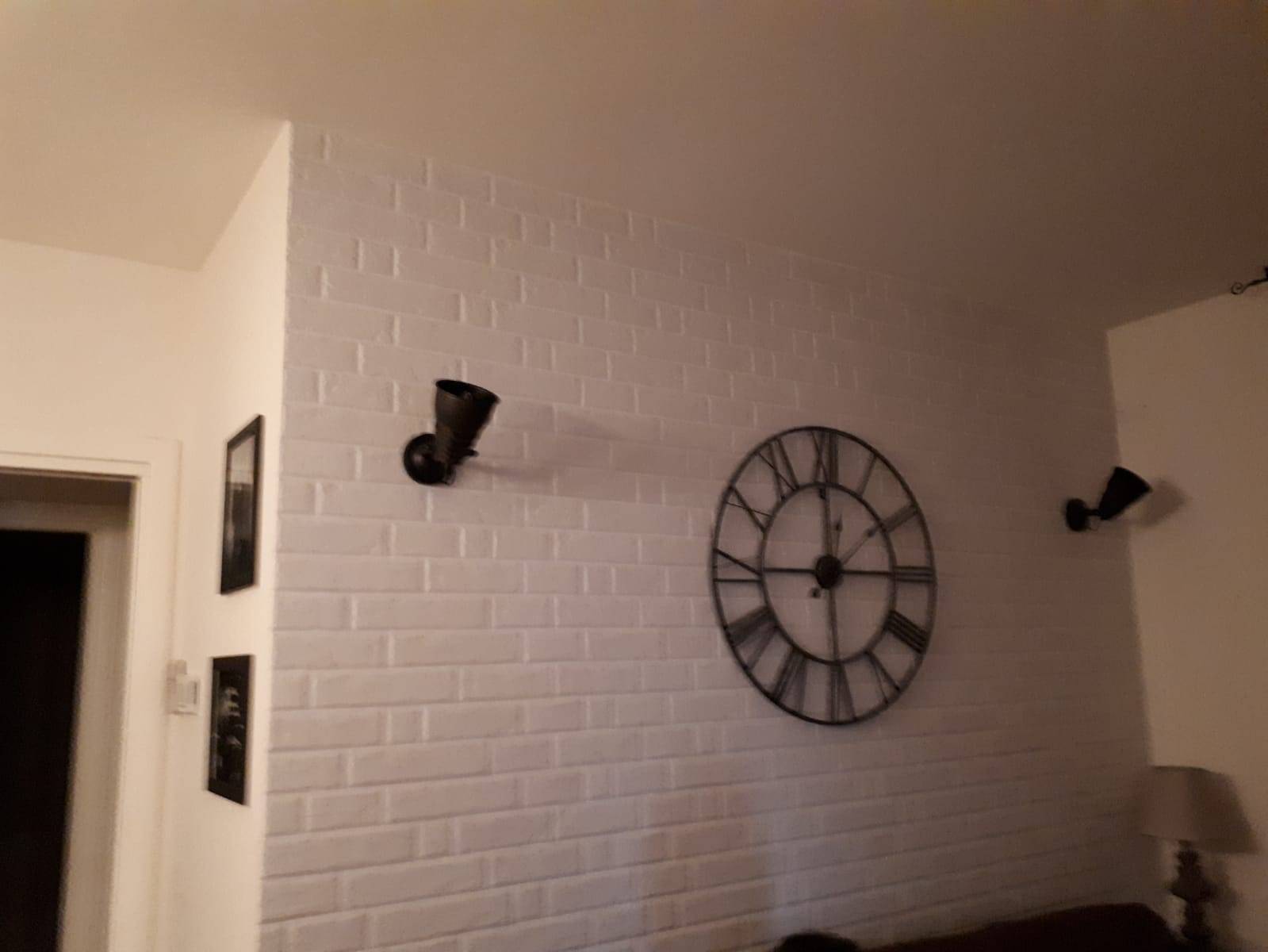 Pavimenti in gres -pietra grigia in due tonalit pareti bianche e inserti in mattoncini a vista che esaltano le tonalit degli arredi.