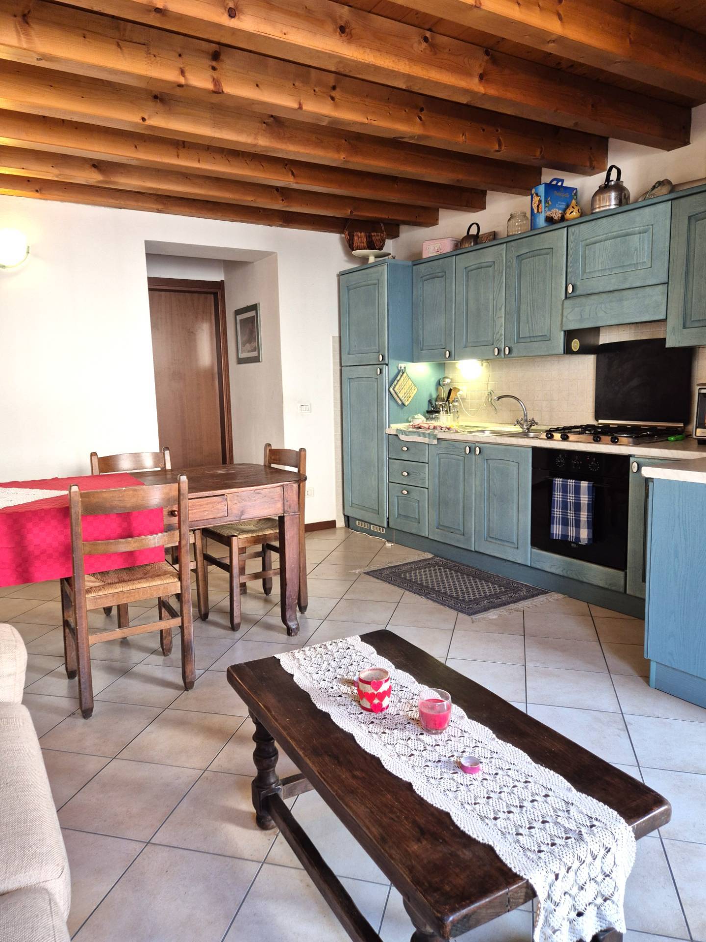BILOCALE CON PORTICATO ESTERNO E CORTE PRIVATA PASTRENGO: Centro Paese, in contesto totalmente ristrutturato nel 2006, appartamento bilocale di ampie dimensioni al piano terra, con ingresso indipendente, composto da soggiorno con angolo cottura e ripostiglio, spaziosa camera matrimoniale e bagno, dai quali si accede al cortile privato con loggia coperta e ad un ripostiglio.
