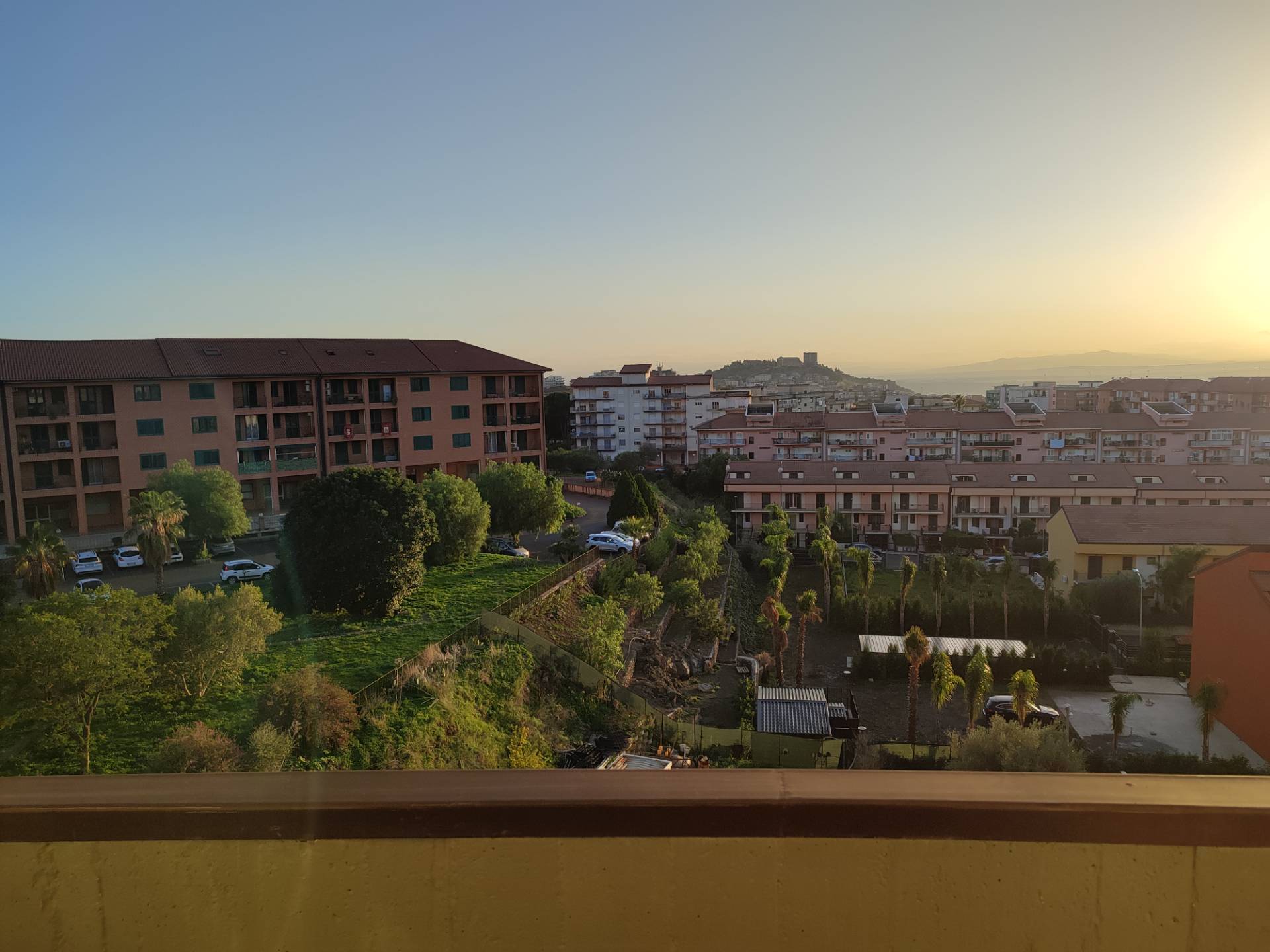 Il soggiorno, ampio e luminoso, si apre su un balcone che offre una piacevole vista sulla collina storica e zona circostante.