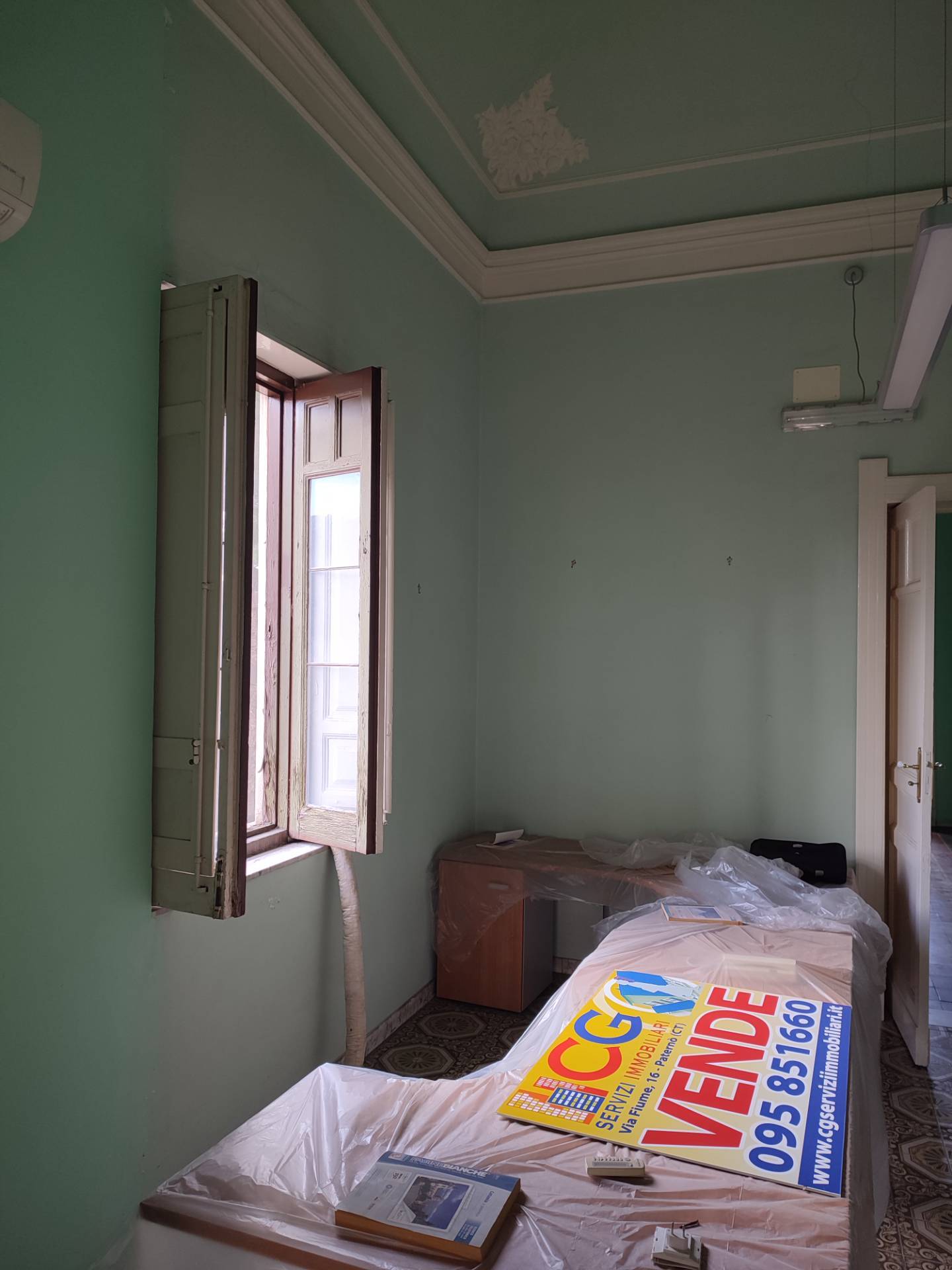 paterno' (ct) nella centralissima via vittorio emanuele di fronte la villa comunale si propone in vendita all'interno di un palazzo storico appartamento rifinito con tripla esposizione posto al piano primo composto da: ingresso salone, camera matrimoniale, bagno e cucina con, da scala interna si accede al piano secondo composto da vano deposito e terrazzino a livello.