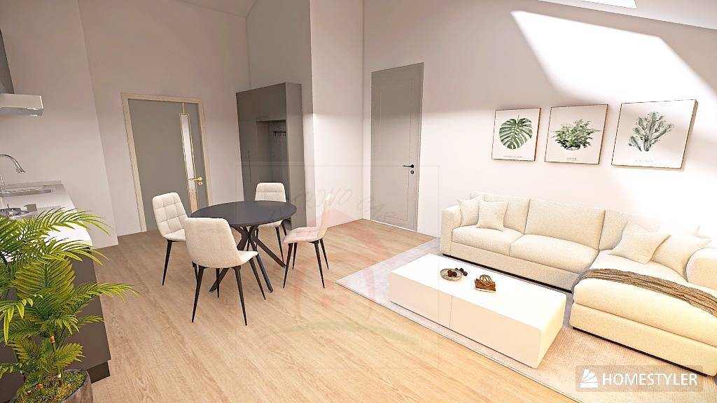 L'immobile composto da un soggiorno con cucina a vista, un disbrigo, un bagno finestrato, una spaziosa stanza.