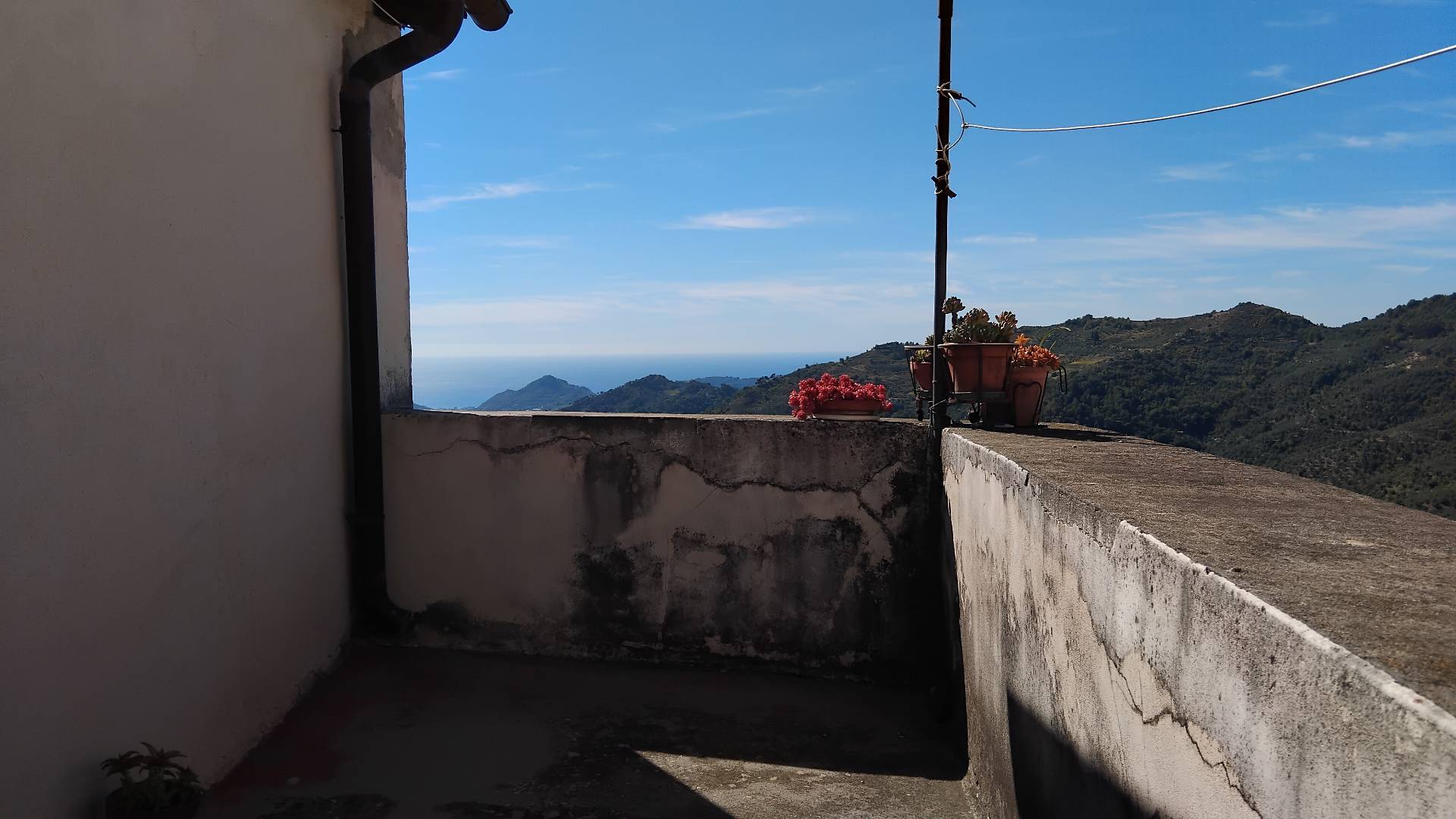 La terrazza offre una bellissima vista mare, colline e paese, ideale per rilassarsi, dipingere, leggere o prendere un aperitivo in un ambiente tranquillo e dall'aria pura. Entrata con portone al piano terra dove sono presenti 2 abitazioni, questa in vendita e un vicino.