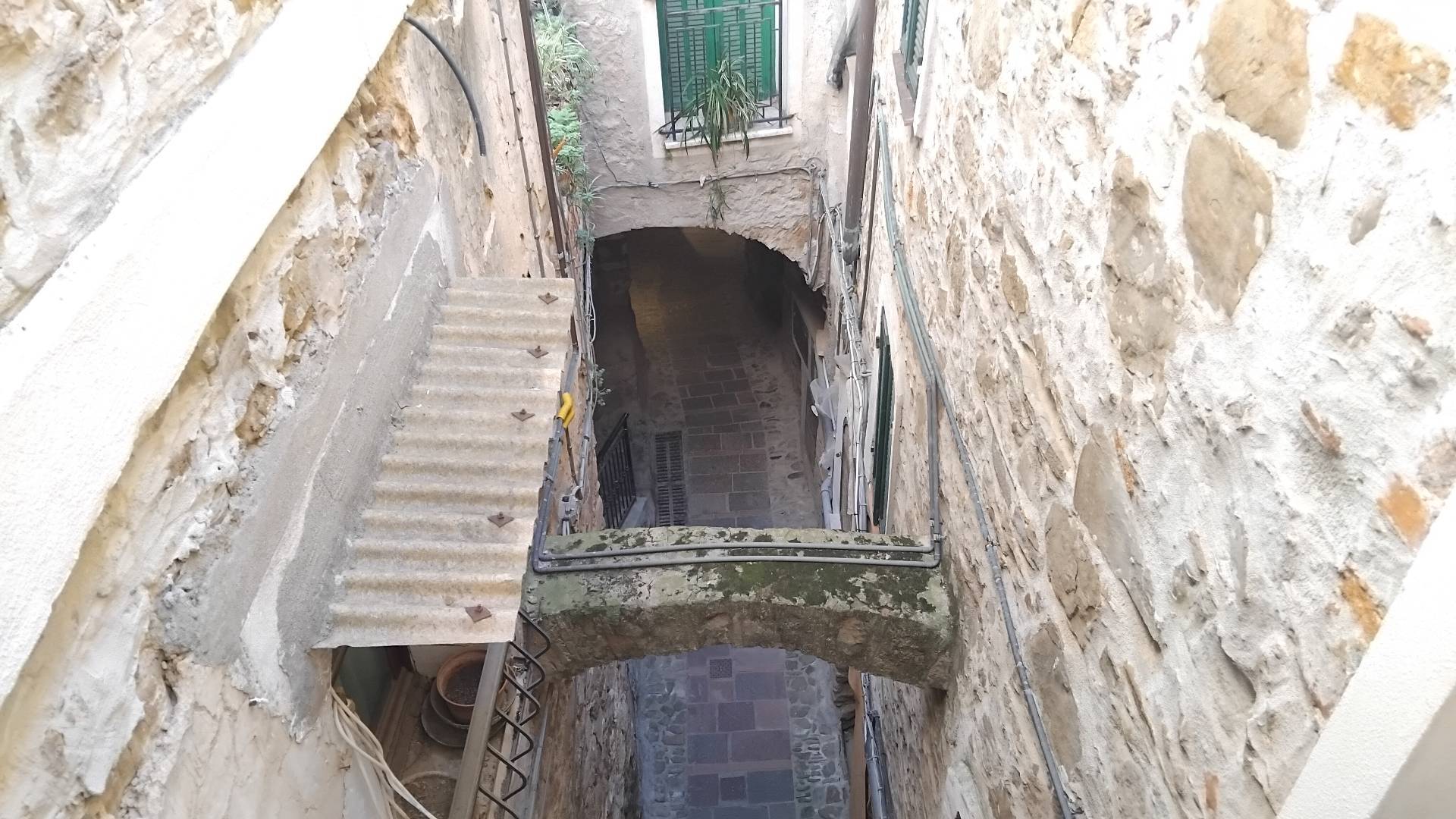 Appartamento nel centro storico, caratteristico, entrata al primo piano con sala, cucina, caminetto e disimpegno, al piano superiore grande stanza con terrazza vista mare, studio, camera da letto e altra stanza che porta al sottotetto con possibilit di fare una seconda terrazza ( dietro progetto e approvazione) . Finestre che affacciano sul grazioso antico vicolo e terrazza e camera sul mare. Soleggiata, storica, luminosa, riscaldamento con caldaia a gas. Spazi per la famiglia e per ospitare amici e parenti.