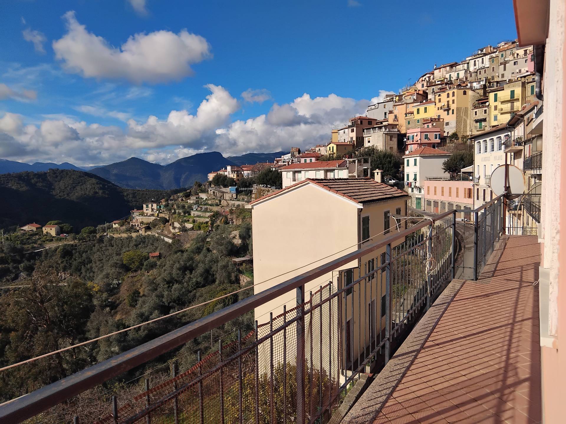 Entrata con scala e balconcino vista monti e mare, in paese, vicino ai servizi.