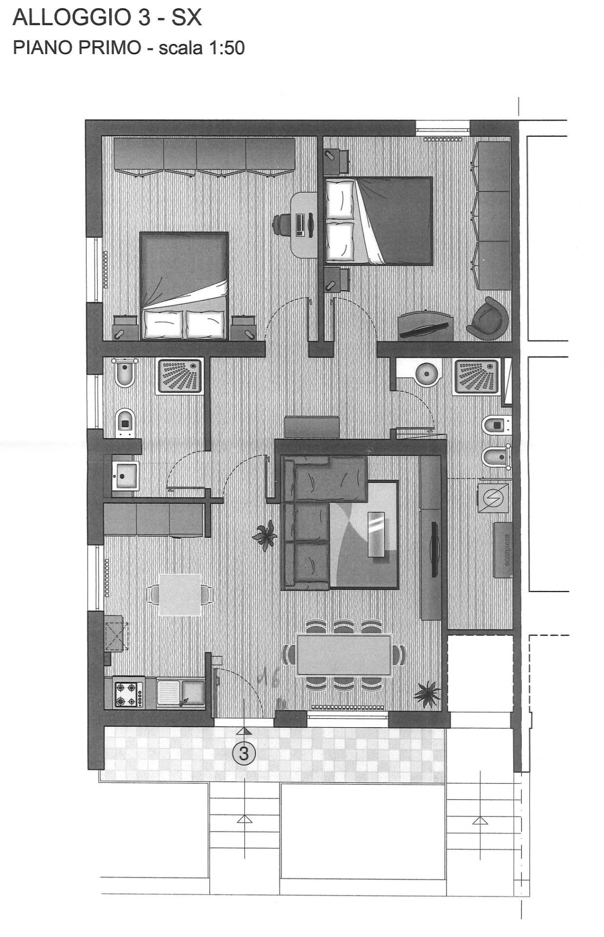 L'unit si trova al piano primo con ingresso indipendente attraverso terrazzo a loggia di buone dimensioni.