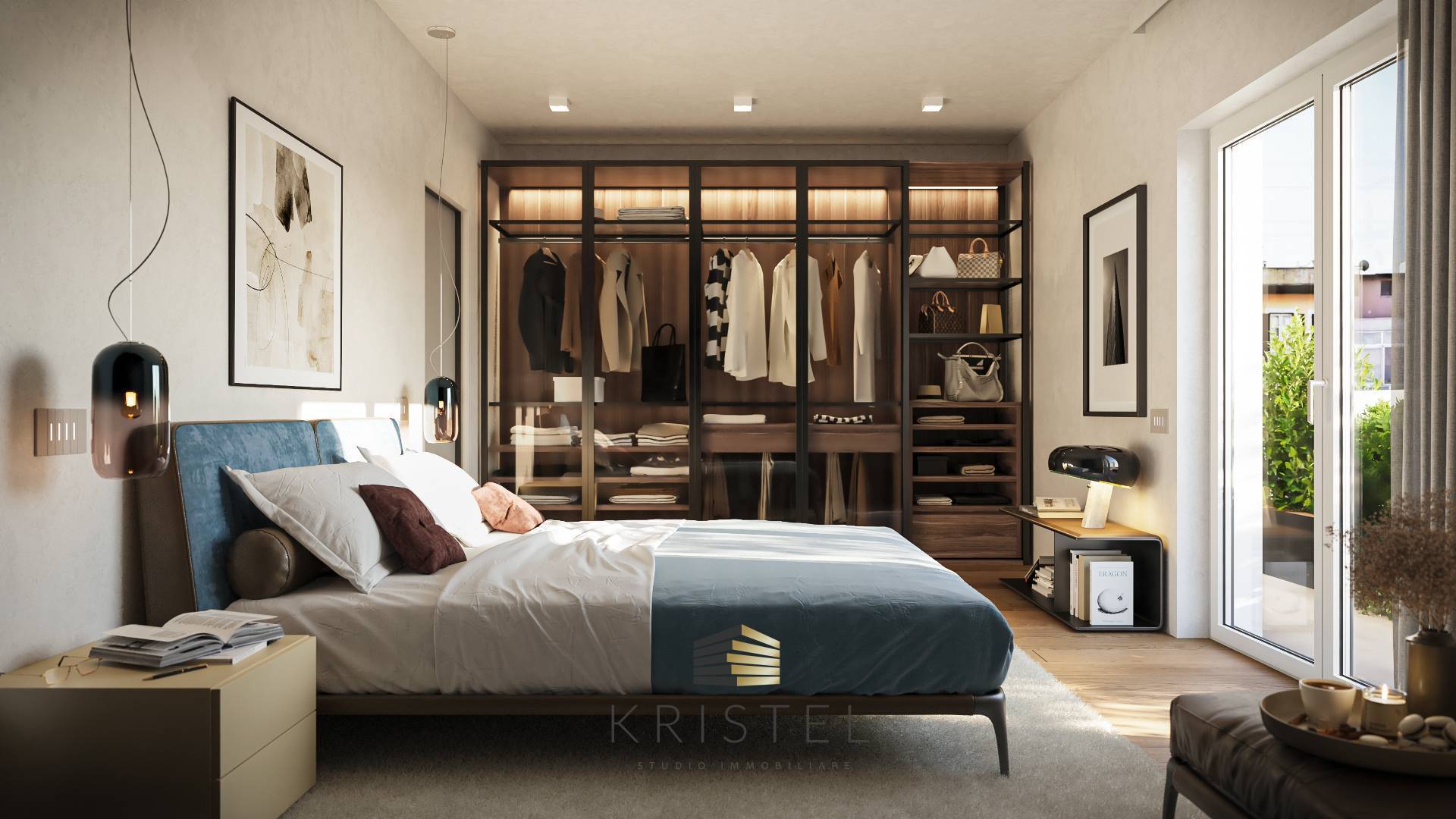 Anche la zona notte ha l'accesso a due balconi distinti che oltre a valorizzare gli ambienti interni permettono di collocare in modo riservato l'area lavanderia.