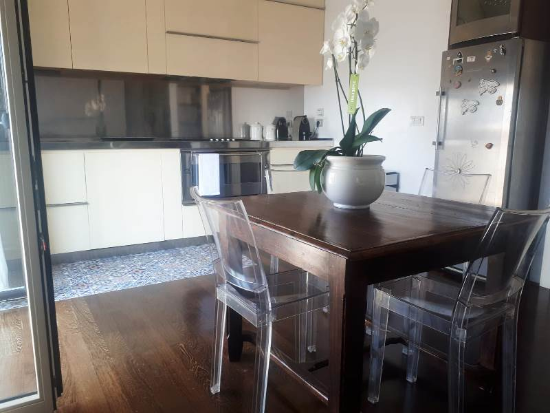 L'appartamento sviluppa una superficie di 100 mq interni oltre ai terrazzi di circa 35 mq, gli spazi sono arricchiti da uno stile moderno e raffinato.