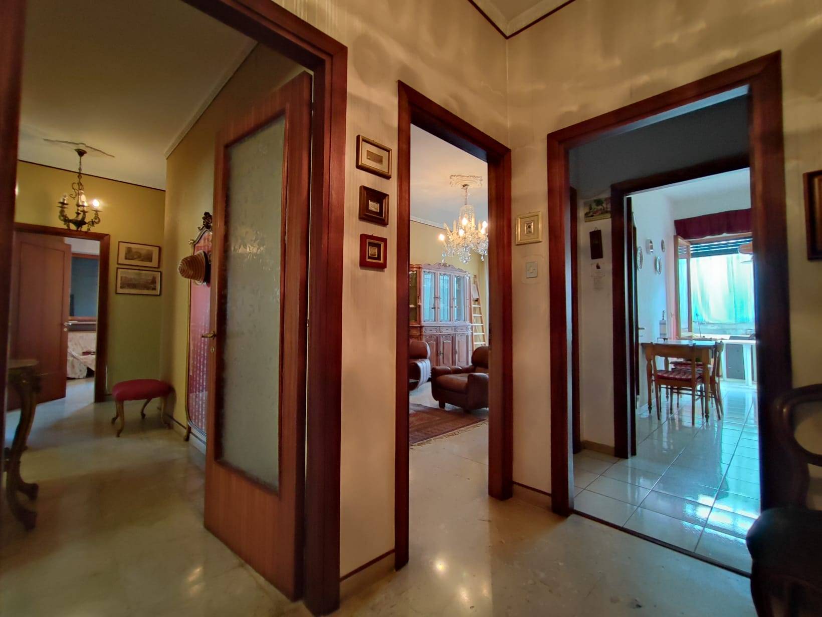 Un ingresso signorile ci conduce alla zona giorno dove troviamo un soggiorno ed una cucina semi abitabile, un disimpegno ci porta nella zona notte dove abbiamo 3 ampie camere da letto matrimoniali, uno studio e 2 bagni.