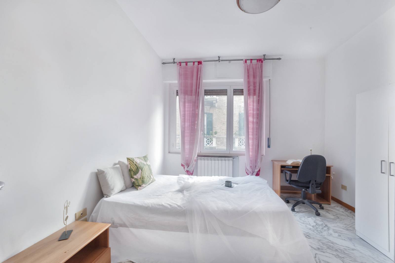 L'appartamento servito da uno studio e da 3 spaziose camere da letto, di cui una con affaccio sul balconcino panoramico, e ben due bagni con doccia.