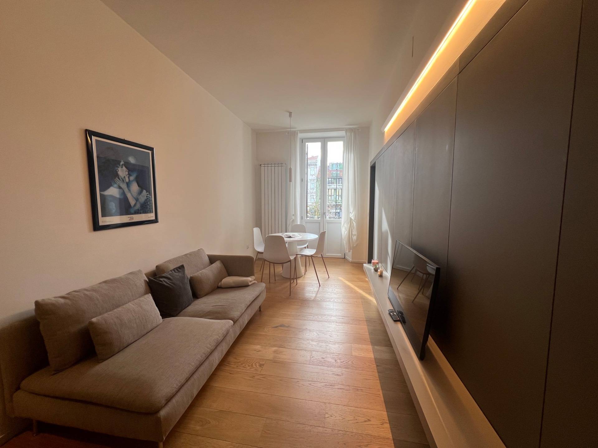 '?Situato al primo piano di una splendida palazzina d'epoca di fine 800, questo appartamento di circa 80 mq il risultato di una ristrutturazione completa nel 2021. '?Lo stile, raffinato e minimale, colpisce fin da subito grazie alleleganza dei dettagli, come la boiserie a tutta altezza che definisce la zona living e nasconde porte a filo muro. '?Questo elemento architettonico disegna gli spazi fino alla cucina su misura, concepita per essere funzionale e integrata nel soggiorno, ma visivamente nascosta, cos come la zona spogliatoio/lavanderia '?Anche il parquet in continuit dona armonia e calore, proseguendo nella zona notte, dove trovano posto due camere da letto e un bagno.