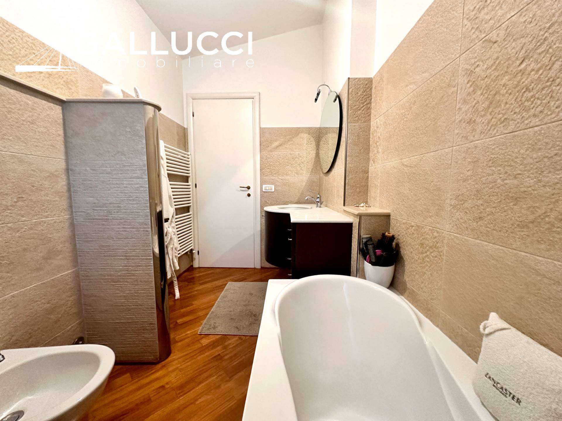 Inoltre, l'appartamento dispone di porta blindata, videocitofono, aria condizionata in zona giorno e zona notte, infissi nuovi in pvc triplo vetro, caldaia a condensazione e pannelli fotovoltaici.