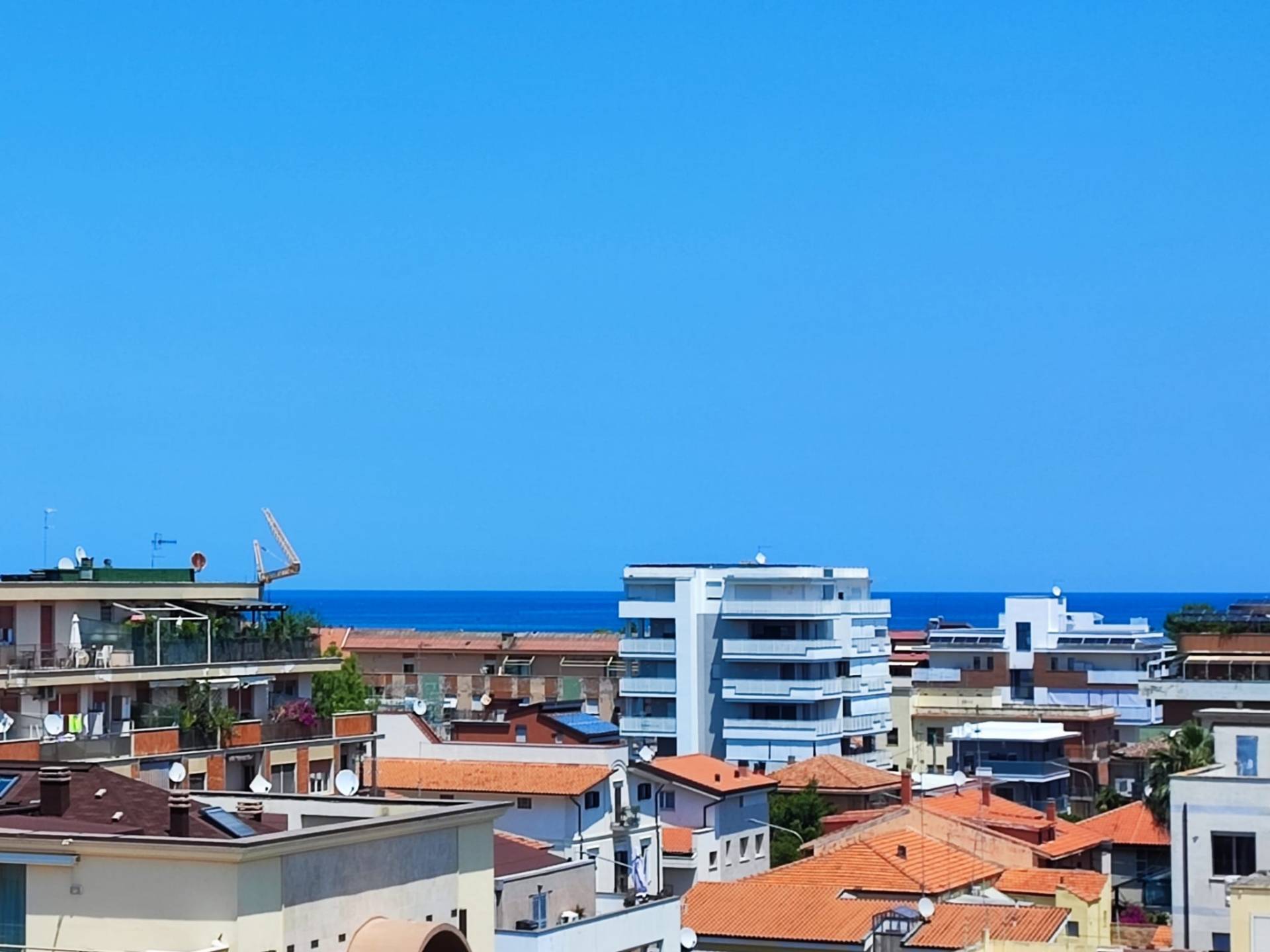 La generosa superficie interna dell'attico di circa 170 mq, trova un'estensione naturale negli spazi esterni di 180 mq, con grandi terrazze che abbracciano integralmente l'unit abitativa e che permettono di godere di una meravigliosa vista mare da un lato e di romantici tramonti sulle colline pescaresi dall'altro.