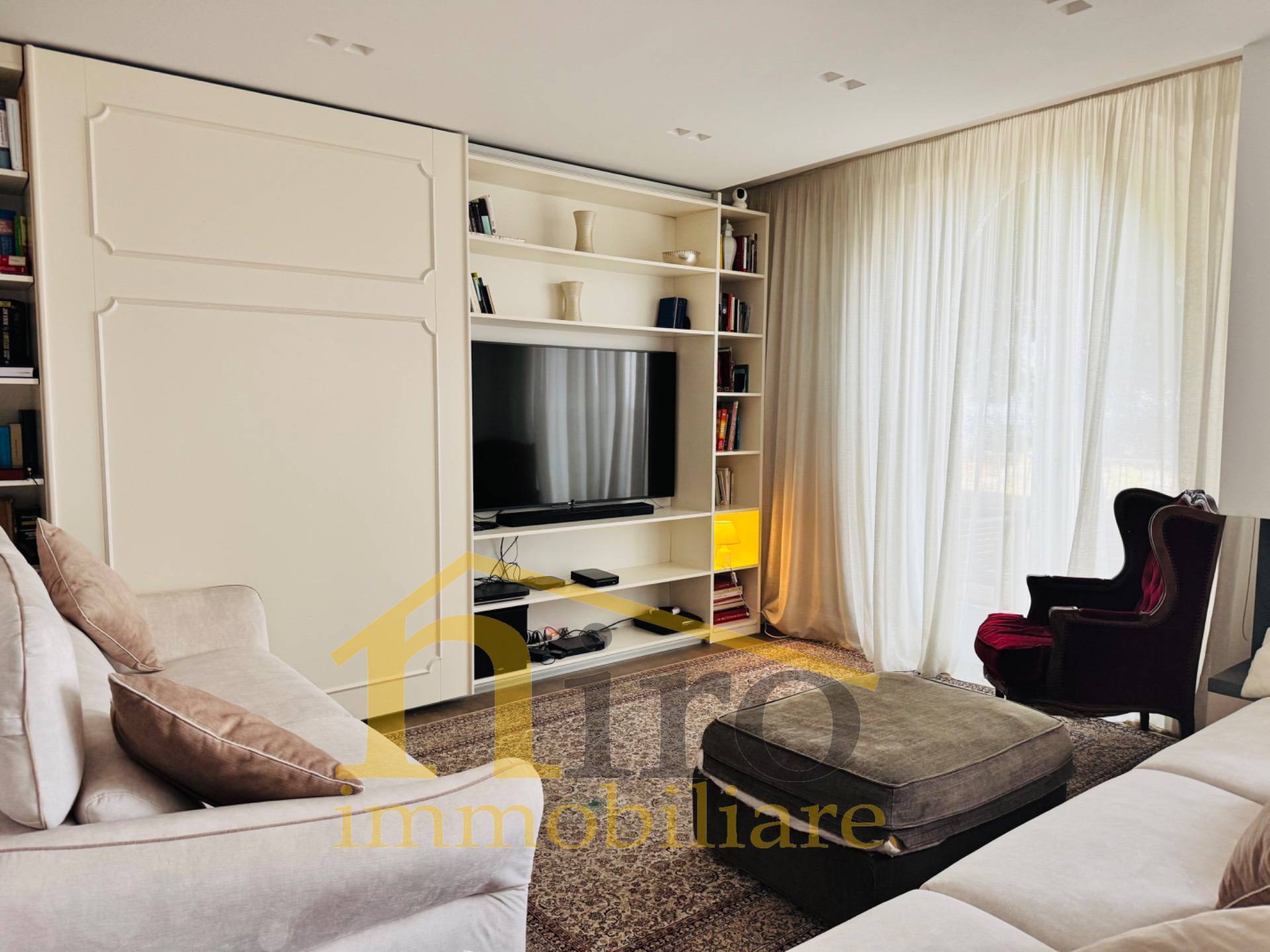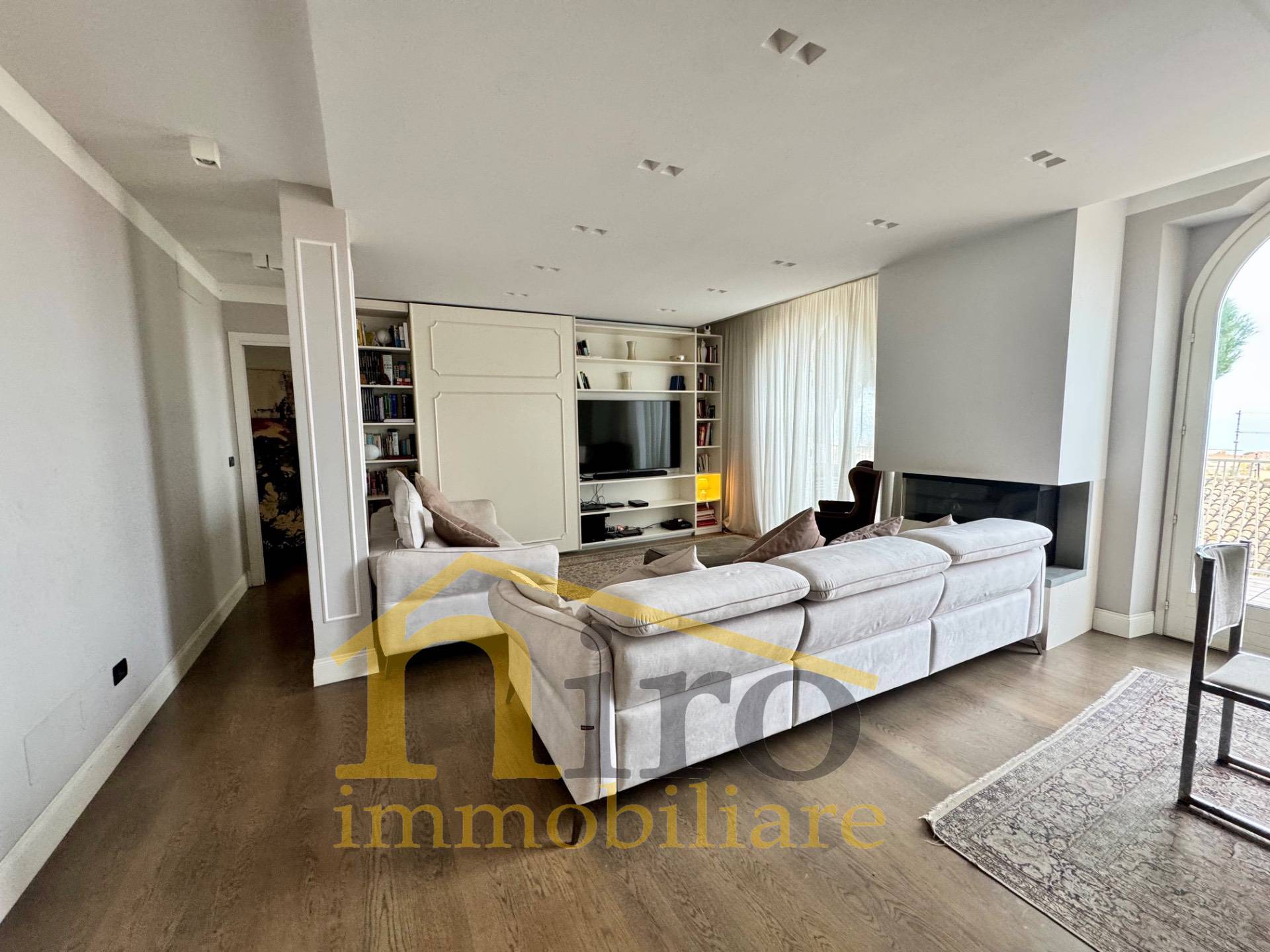 Lingresso si apre su un soggiorno di generose dimensioni, perfetto per vivere momenti di relax o accogliere ospiti, collegato al terrazzo perimetrale da cui si pu godere una vista mare unica e sempre presente.