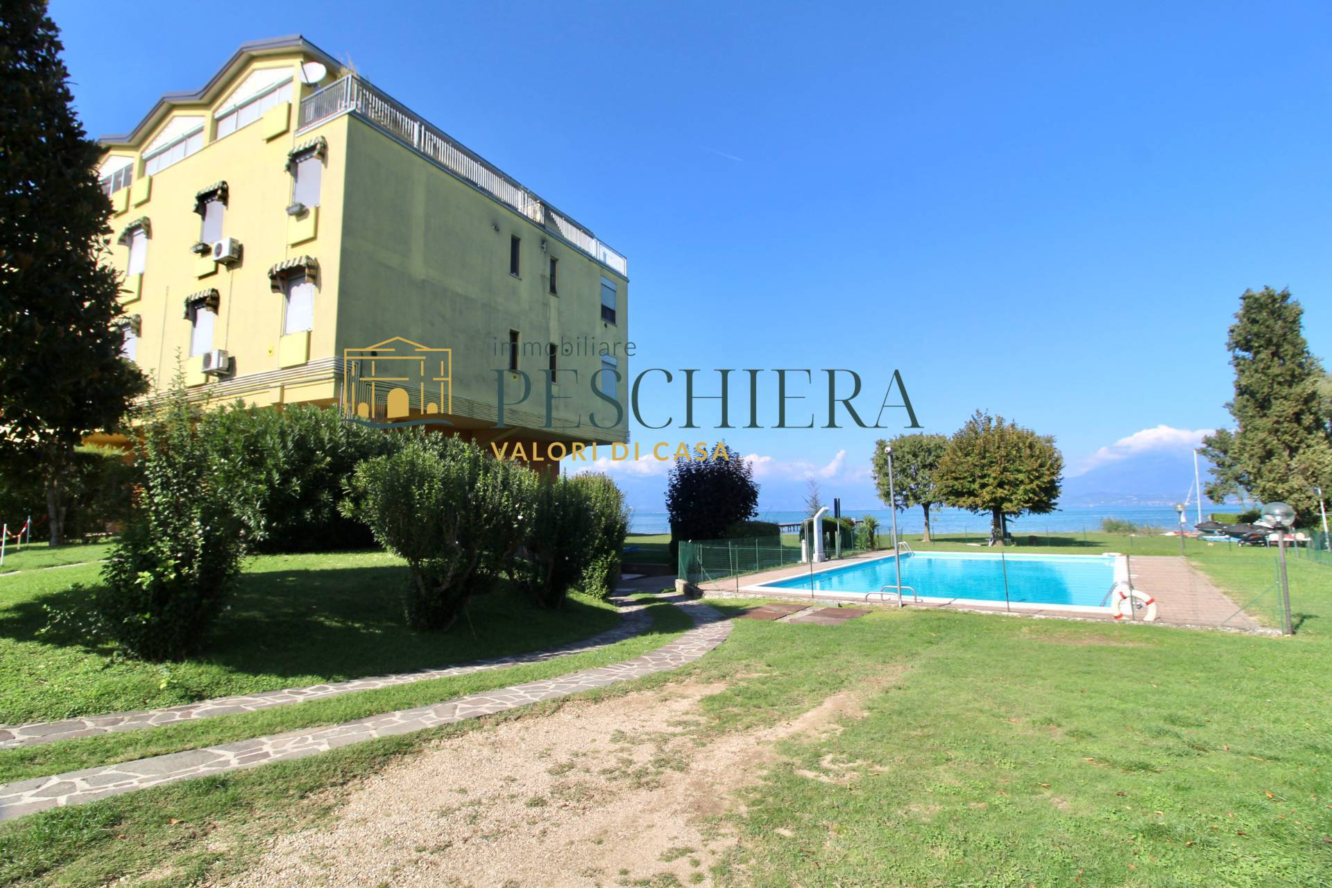 Il residence, immerso nel verde e affacciato direttamente sul lago, offre una piscina condominiale, una splendida area verde che conduce a una spiaggia privata con pontile con accesso diretto alle acque del Garda ed attracco barca.