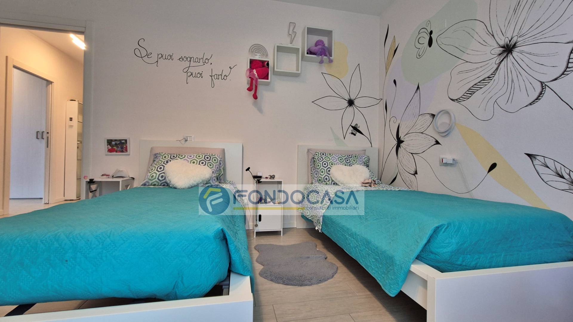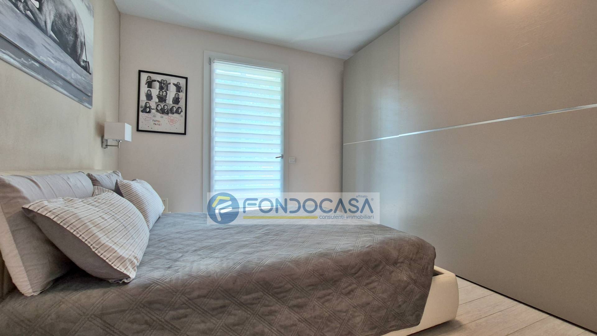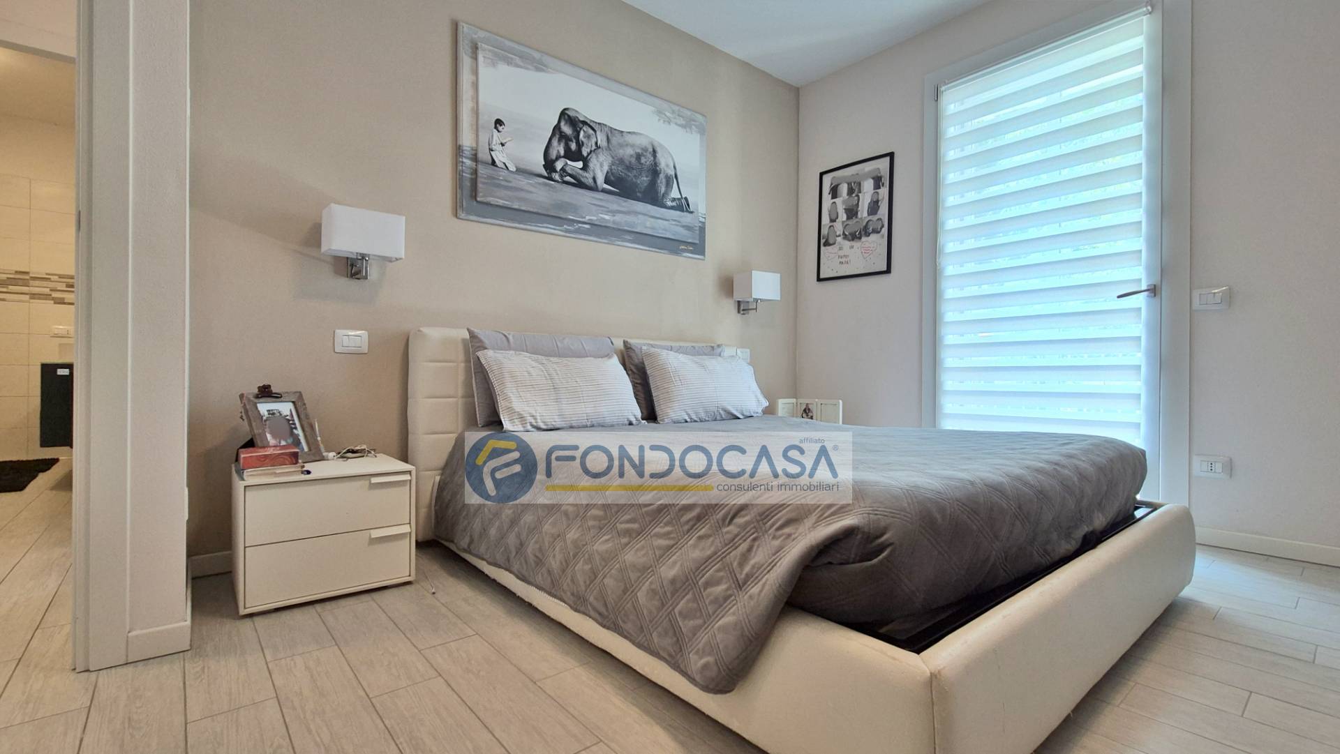 La zona notte composta da due camere da letto, entrambe con accesso al portico privato, uno studio/guardaroba e due bagni.
