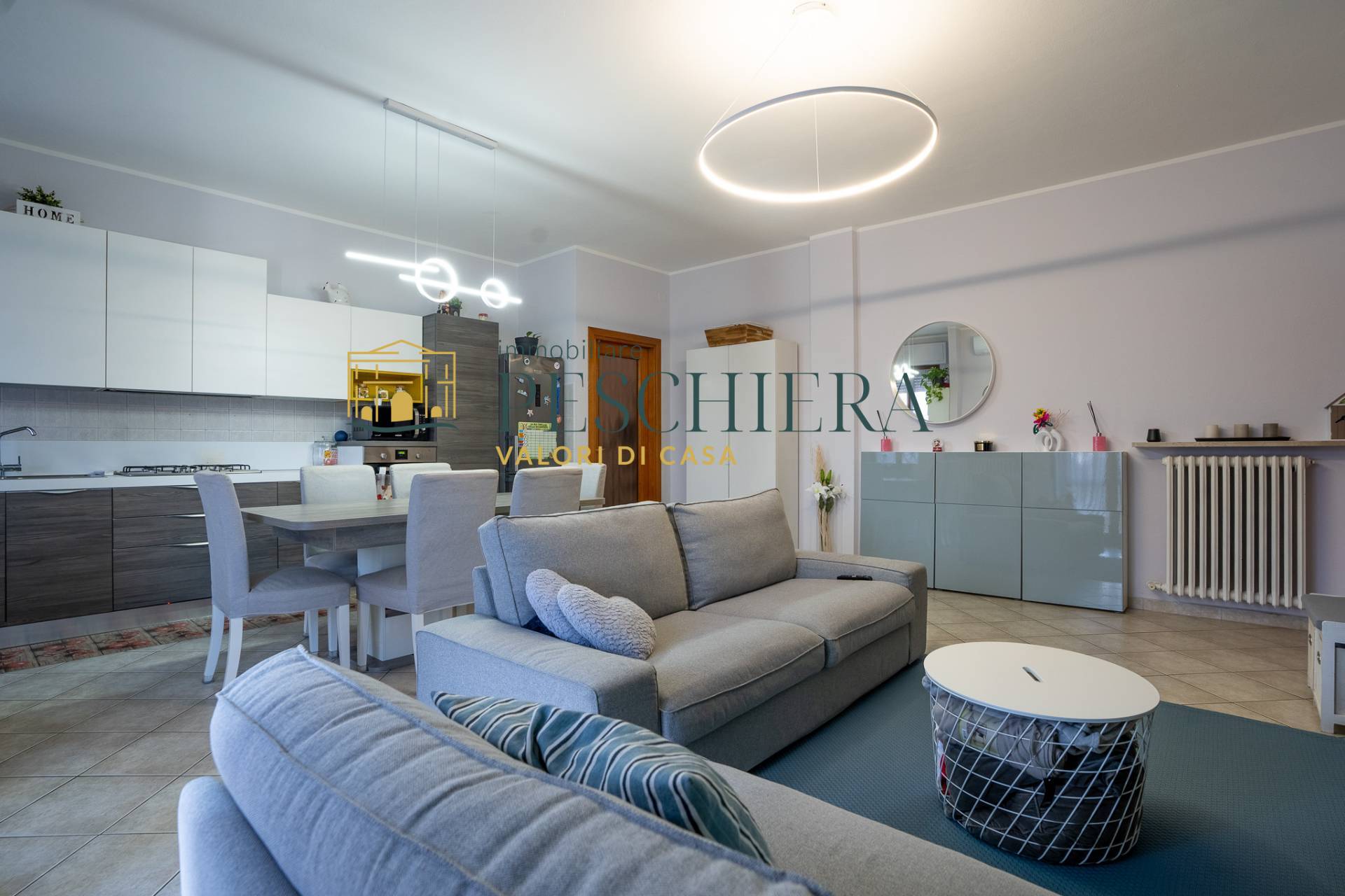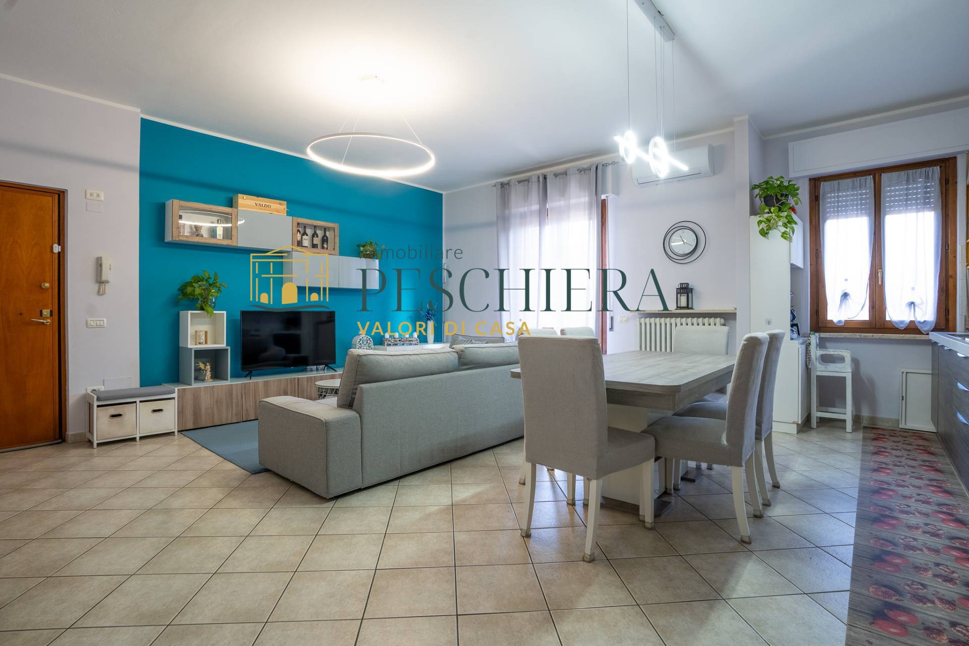 Lingresso introduce direttamente in una zona giorno ampia e ben organizzata, caratterizzata da unarea living accogliente e da una cucina a vista, perfettamente integrata per offrire uno spazio moderno e funzionale, ideale per la vita quotidiana e per ricevere ospiti.