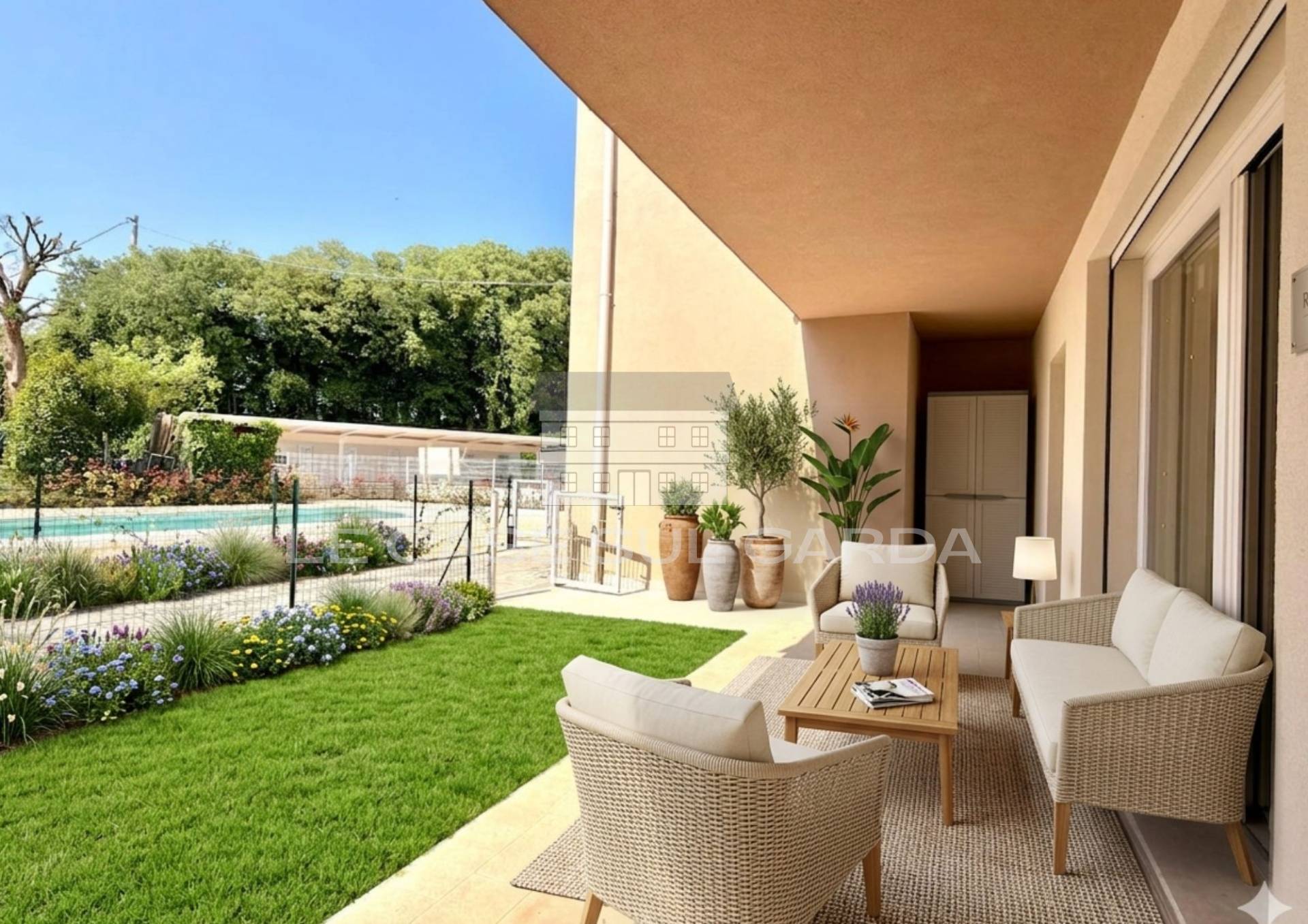 AAA Causa ripensamento vendesi grazioso appartamento trilocale con giardino doppio e piscina!!! A pochi minuti da tutto!! In residence appena ultimato, si vende ampio trilocale con giardino fronte piscina in piccolo contesto di sole 8 unit abitative per met abitate tutto l'anno... L'appartamento dotato di ampio soggiorno con cucina a vista, bagno con finestra, disimpegno con lavanderia, camera matrimoniale e camera doppia... splendido il porticato con giardino davanti e dietro, due posti auto esclusivi, uno dei quali coperto e cantina.