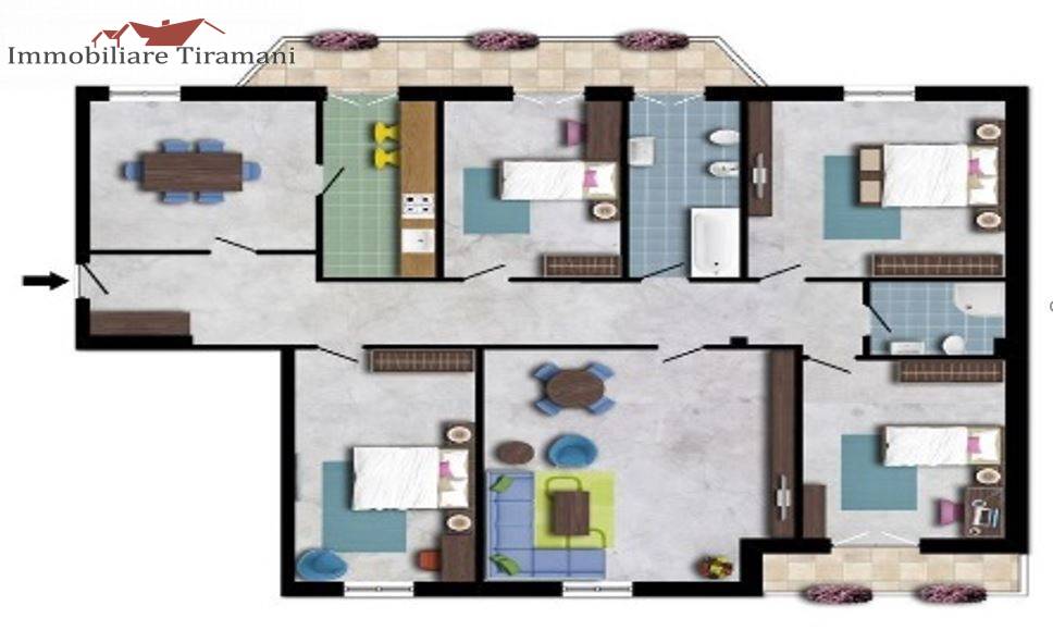 In elegante condominio appartamento molto luminoso composto da ingresso, soggiorno, cucina, 3 letto, bagno, salotto, 2 balconi.