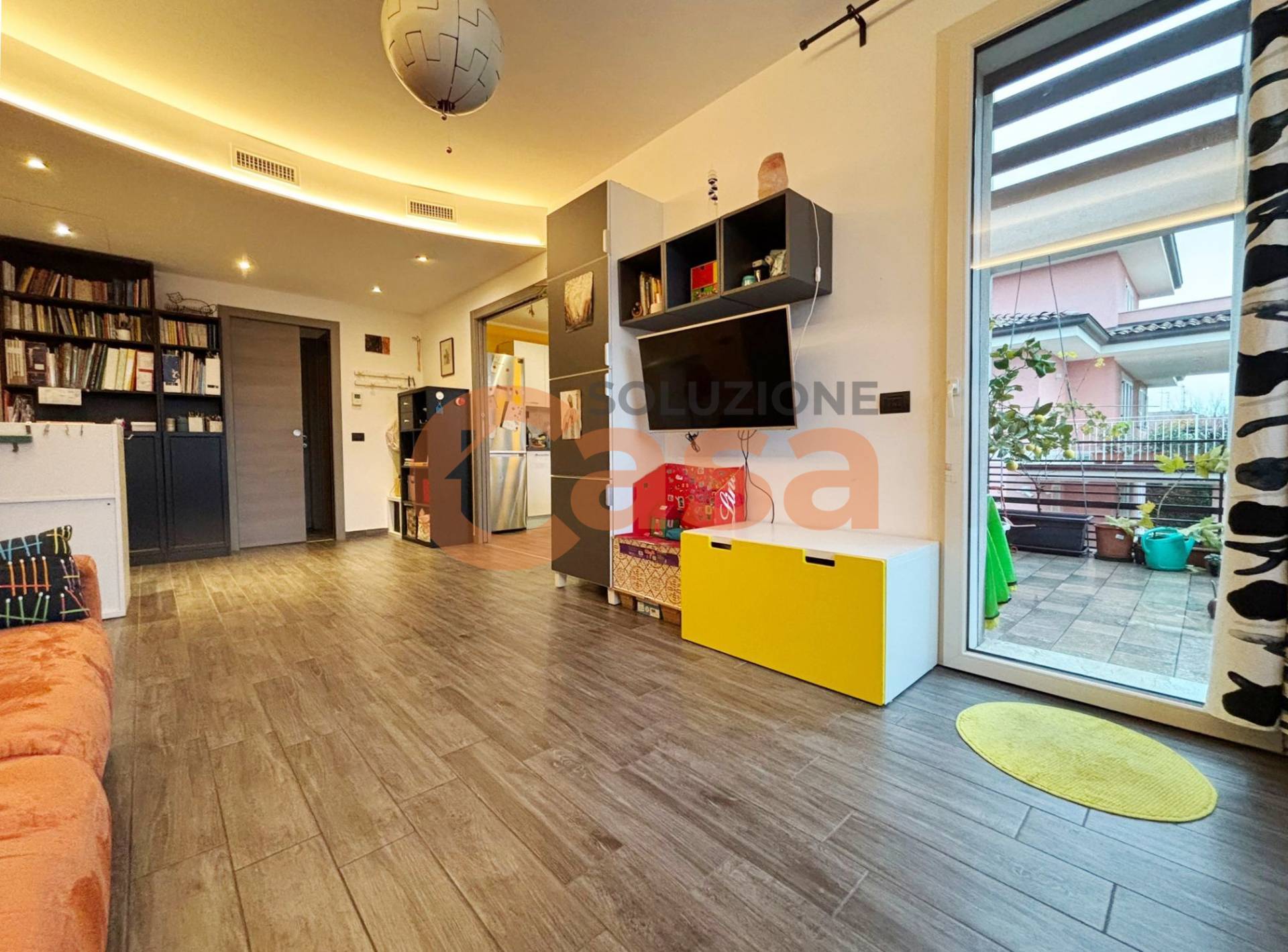 SAN LAZZARO - CLASSE A4 - COSTRUZIONE 2017 - In palazzina tecnologica, servita da ascensore, con impianti di riscaldamento a pavimento , pannelli fotovoltaici e pompa di calore (NO GAS) APPARTAMENTO di mq 100 c.a. posto al primo piano composto da: ampio soggiorno con vetrata e accesso a terrazza aperta su cucina abitabile, zona notte con disimpegno, due camere da letto (di cui una con balcone) e doppi servizi.