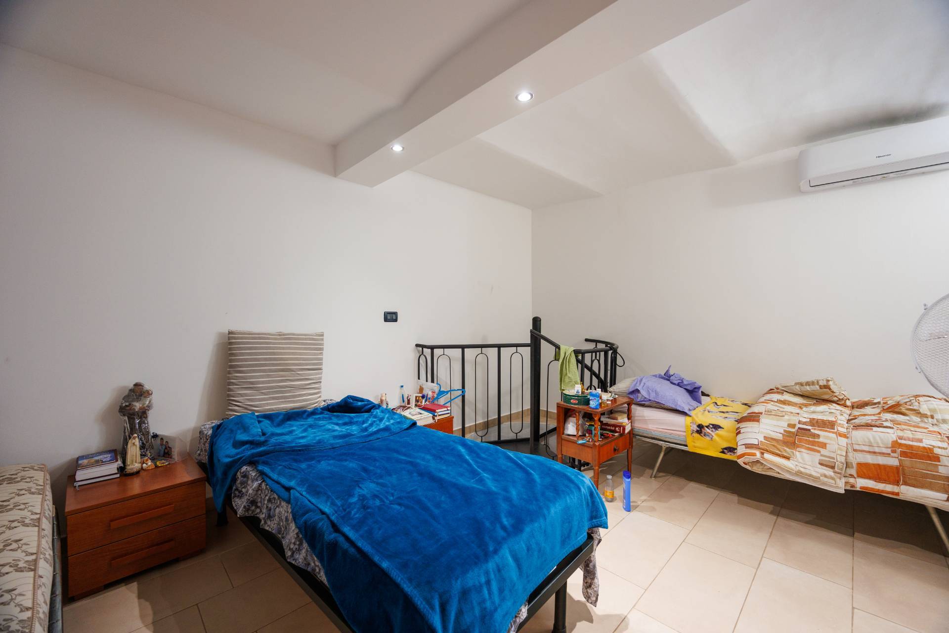 Attraverso una scala interna si accede ai piani inferiori, dove sono collocate le due camere da letto, confortevoli e riservate.