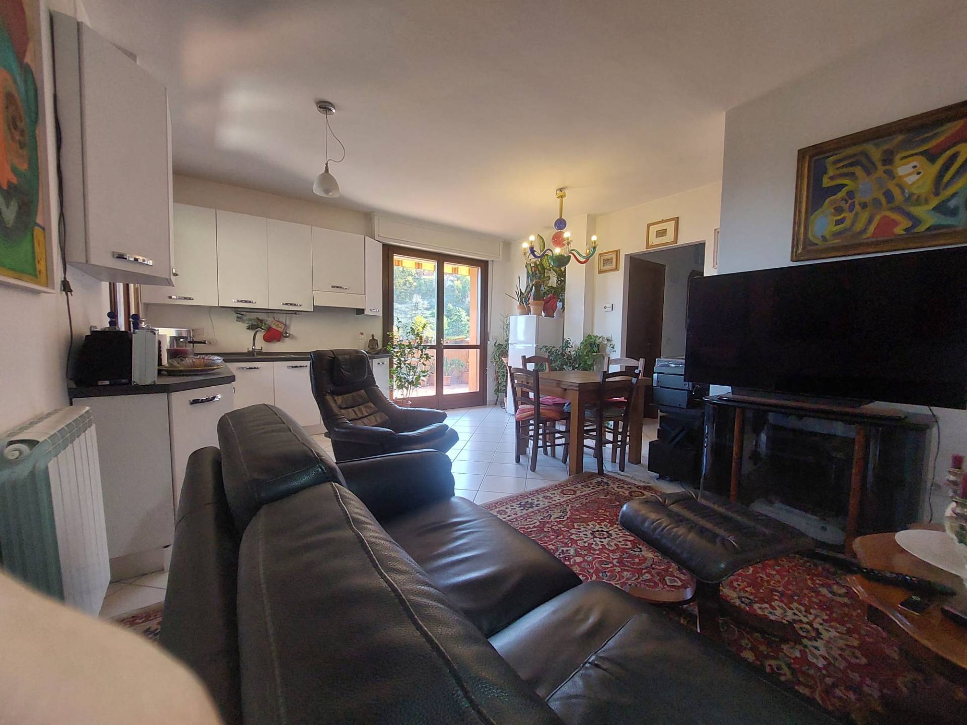 La cucina a vista, integrata nella zona giorno, e presenta un'ampia finestra che garantisce una buona luminosit.