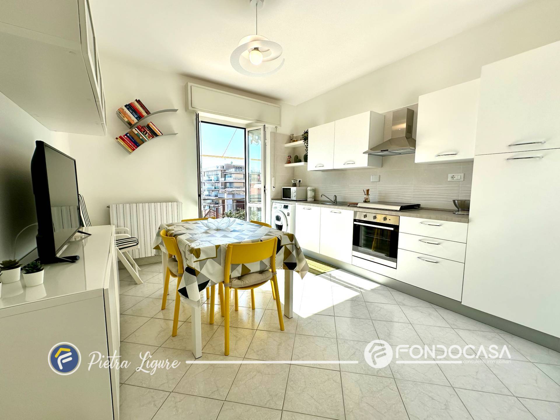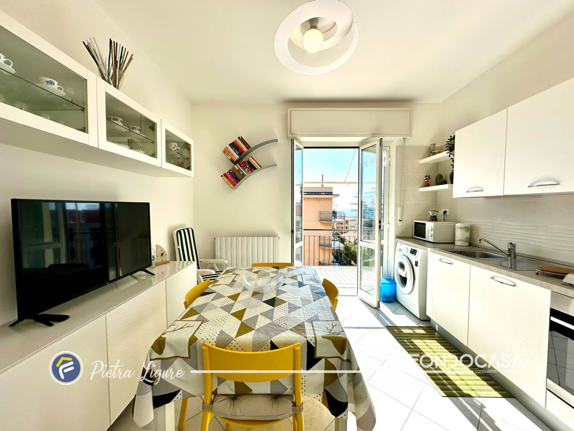 TRILOCALE VISTA MARE IN VENDITA A 100 METRI DALLE SPIAGGE DI PIETRA LIGURE! Hai sempre sognato di vivere a pochi passi dal mare e da tutti i servizi? Ti presentiamo questo trilocale completamente ristrutturato, perfetto per chi cerca una casa pronta da abitare o una seconda casa al mare. Lappartamento si distingue per la sua terrazza angolare con vista mare. Allinterno si compone di cucina abitabile luminosa e panoramica, due camere da letto e un bagno finestrato.