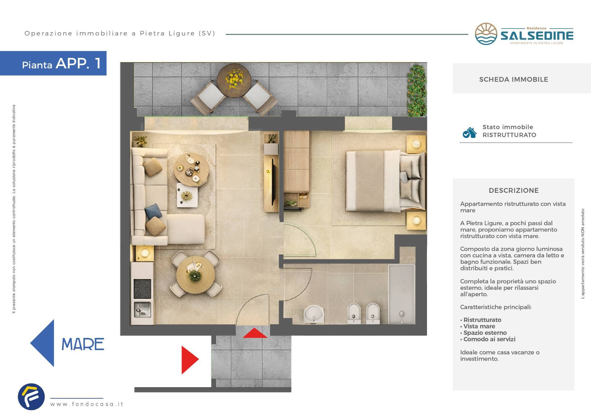 BILOCALE COMPLETAMENTE RISTRUTTURATO A POCHI PASSI DAL MARE E DAL CENTRO STORICO! Fondocasa lieta di presentare un' operazione immobiliare a Pietra Ligure: la ristrutturazione di due appartamenti bilocali situati a soli 50 metri dalle splendide spiagge locali e dal centro storico di Pietra Ligure.