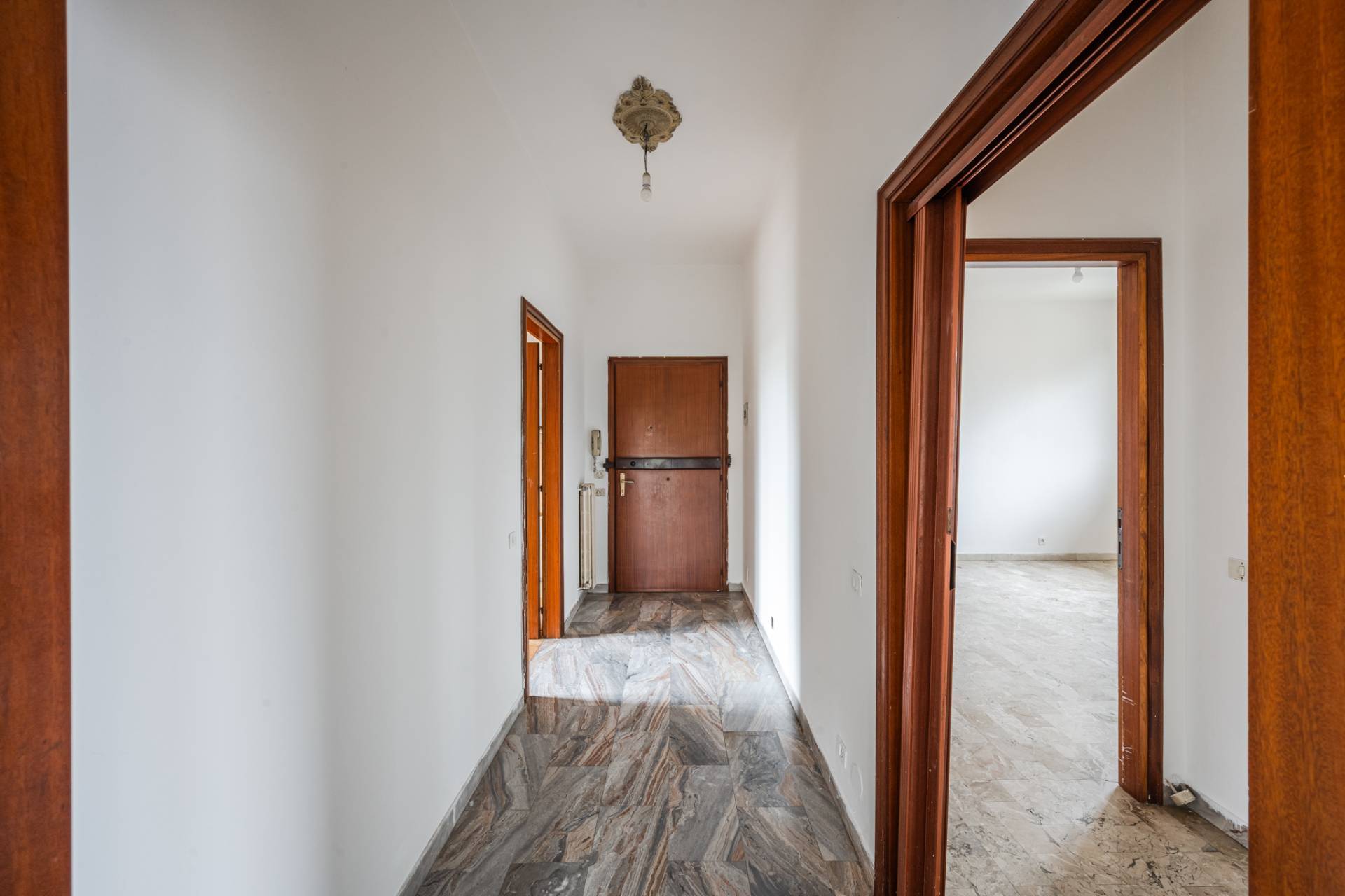 Salendo al piano secondo, lappartamento si apre su un ingresso che conduce a: cucina separata abitabile con balcone, grande salone con doppia esposizione e balcone, reparto notte con disimpegno, due ampie camere matrimoniali, bagno.