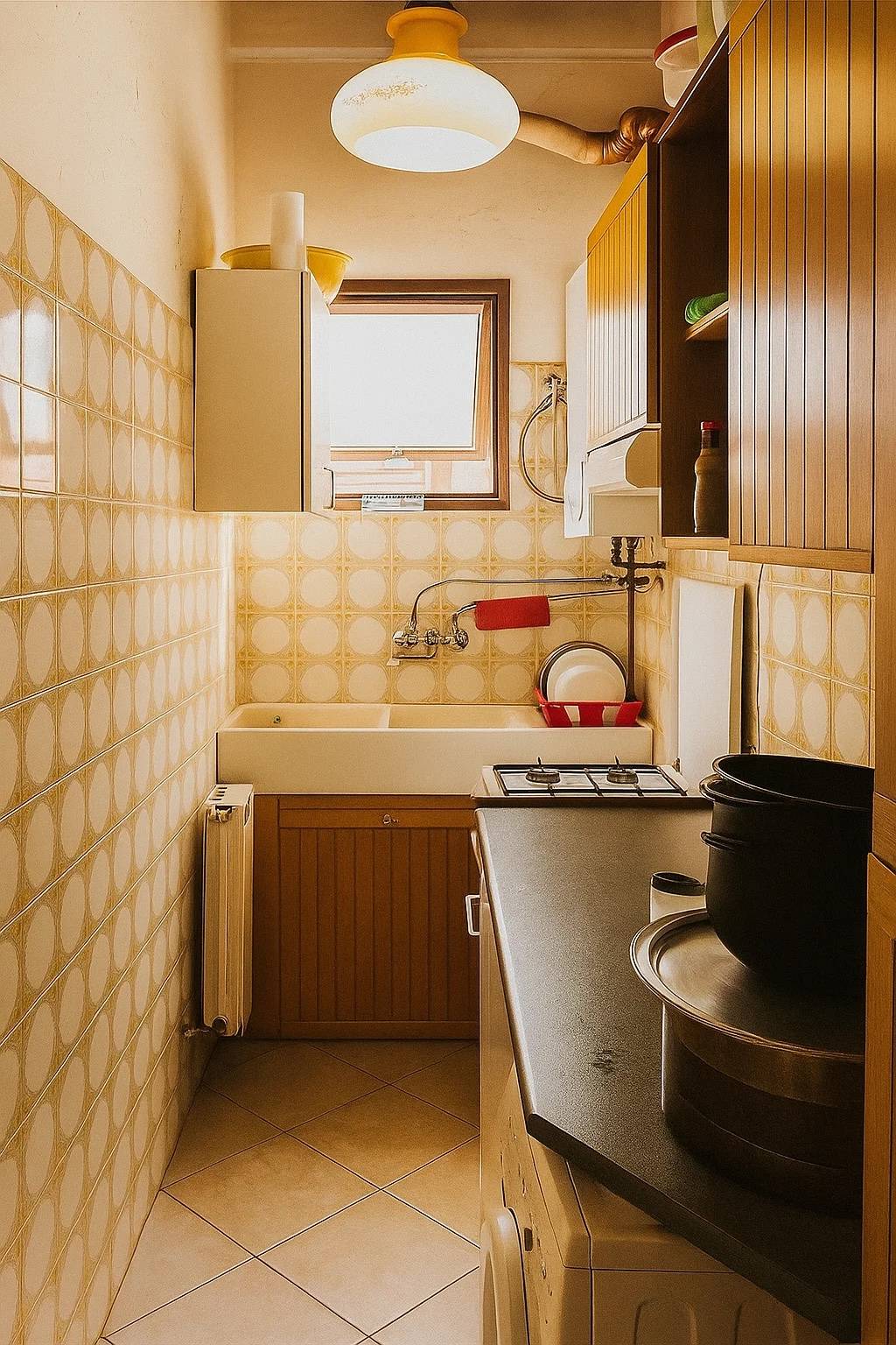 L'appartamento composto da 2 locali, di cui 2 camere da letto, un bagno e cucina abitabile.