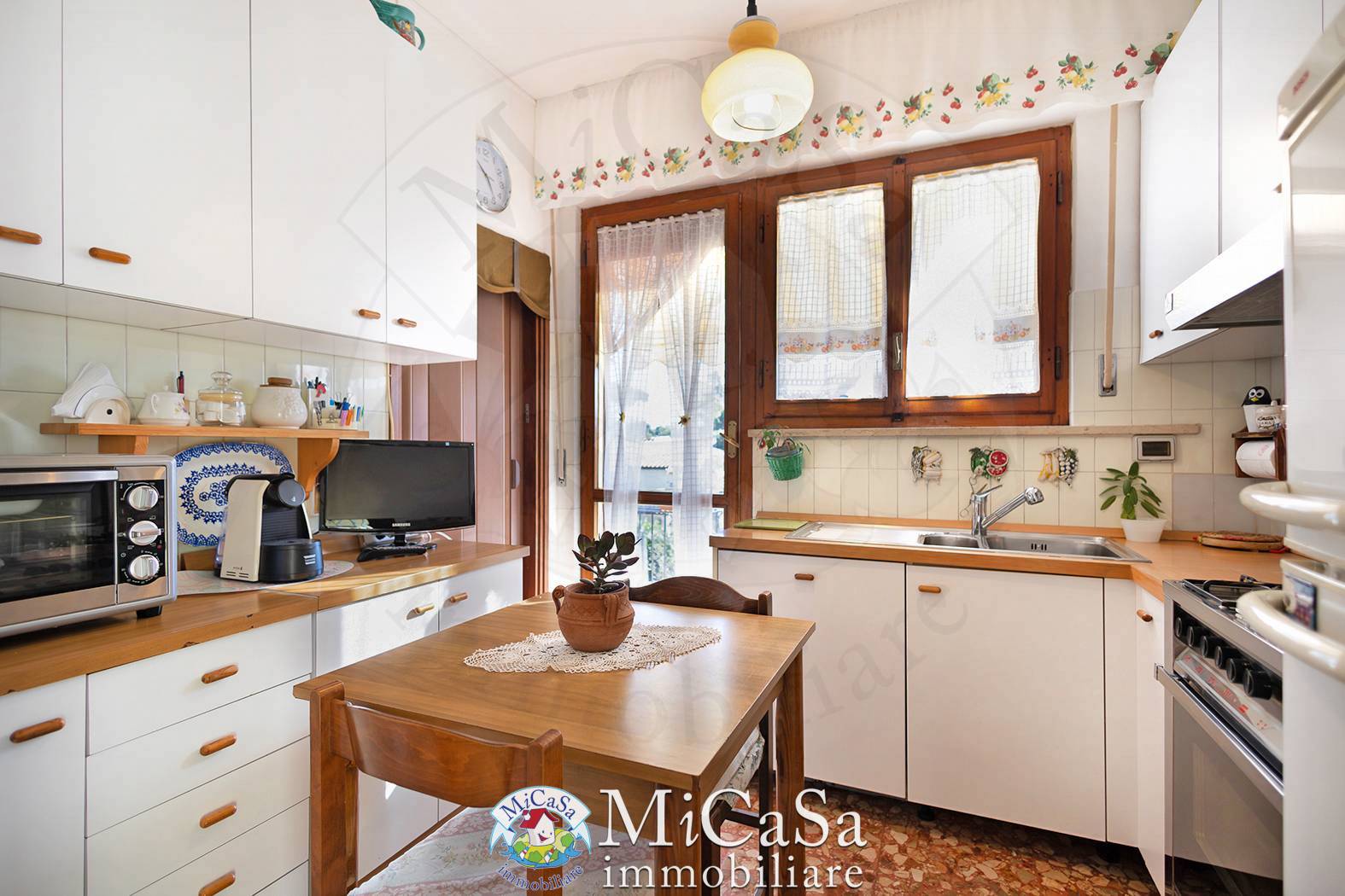 Composto da: ingresso, cucinotto, soggiorno, disimpengo notte, tre camere (di cui una matrimoniale, una doppia e una singola), bagno con box doccia finestrato.