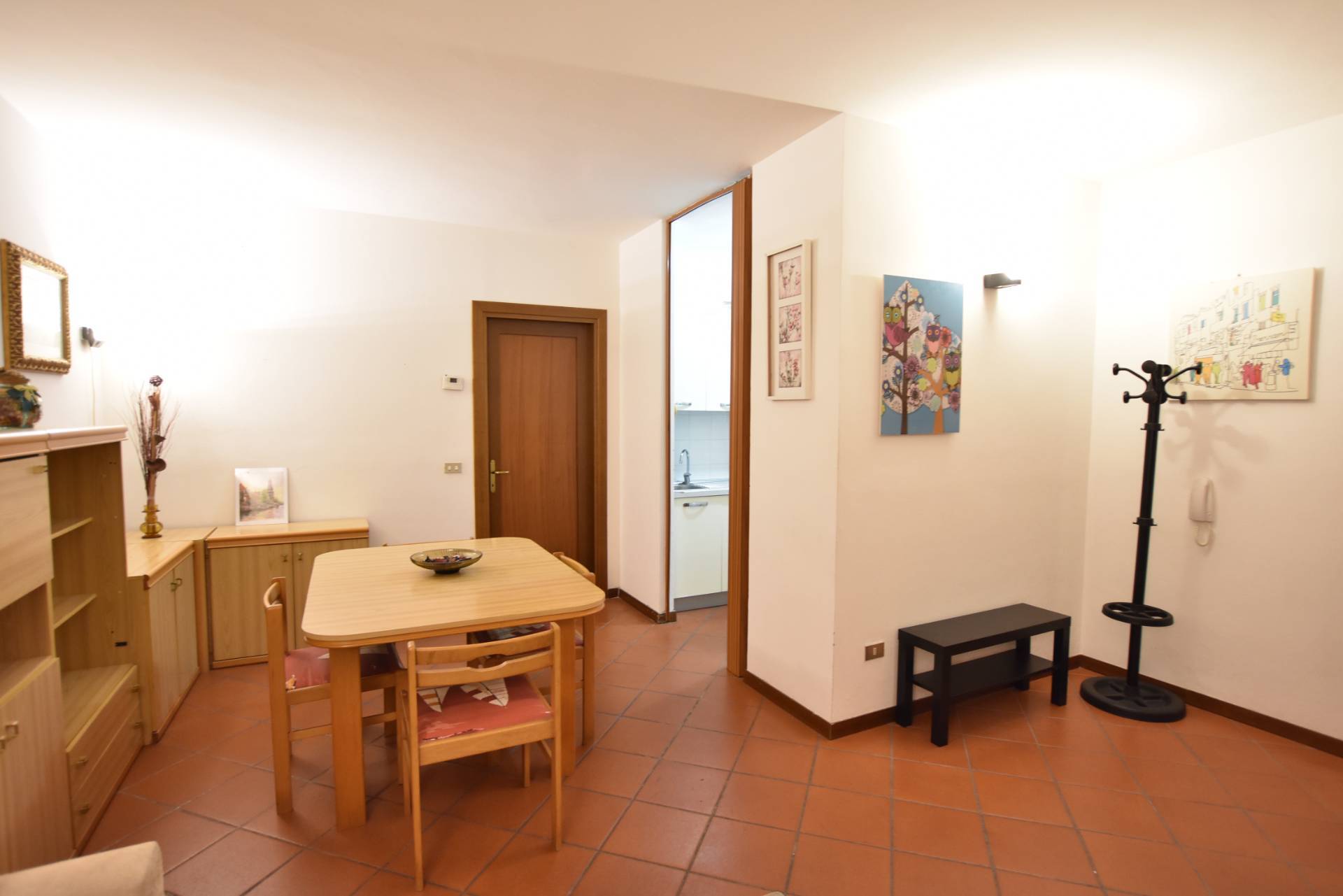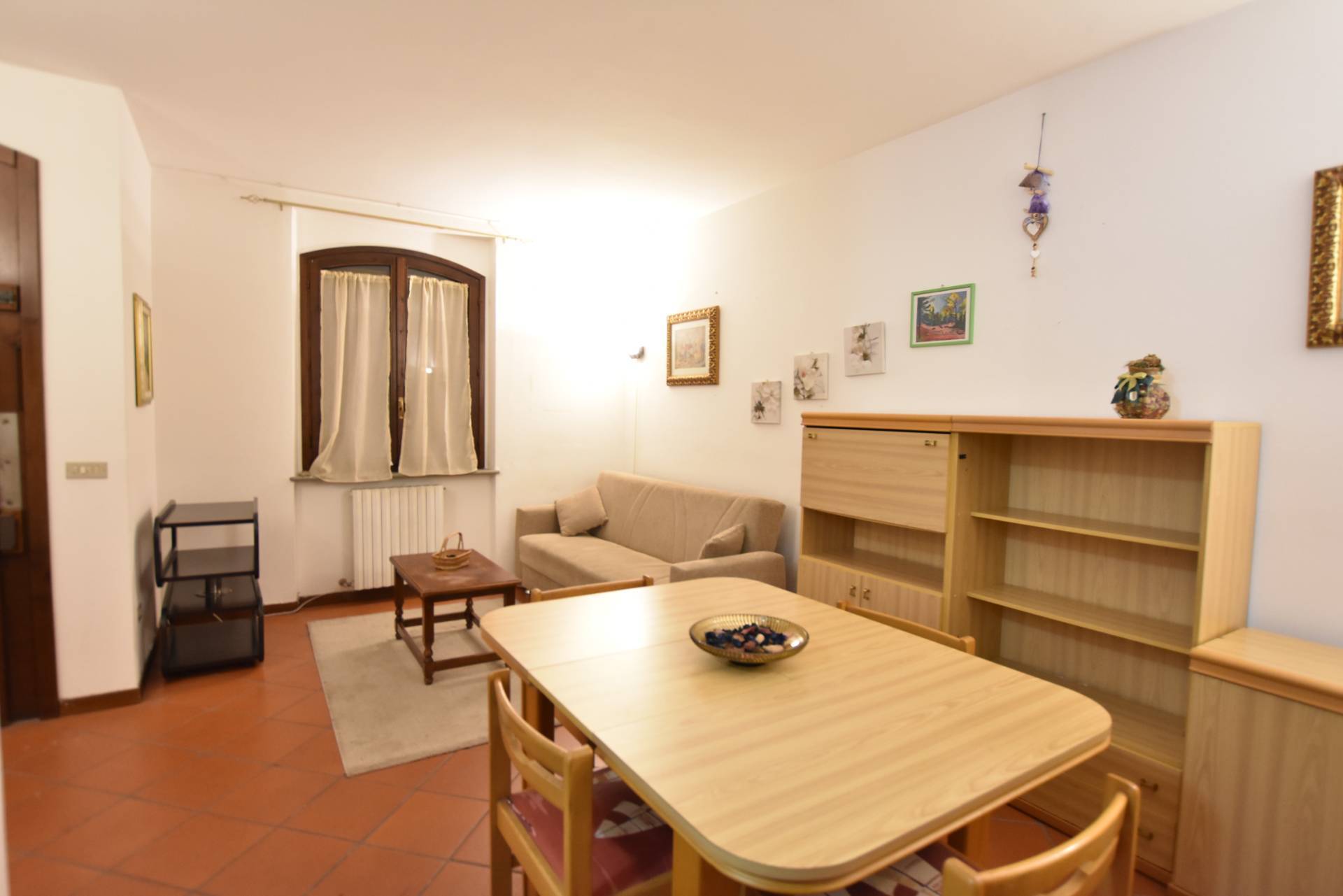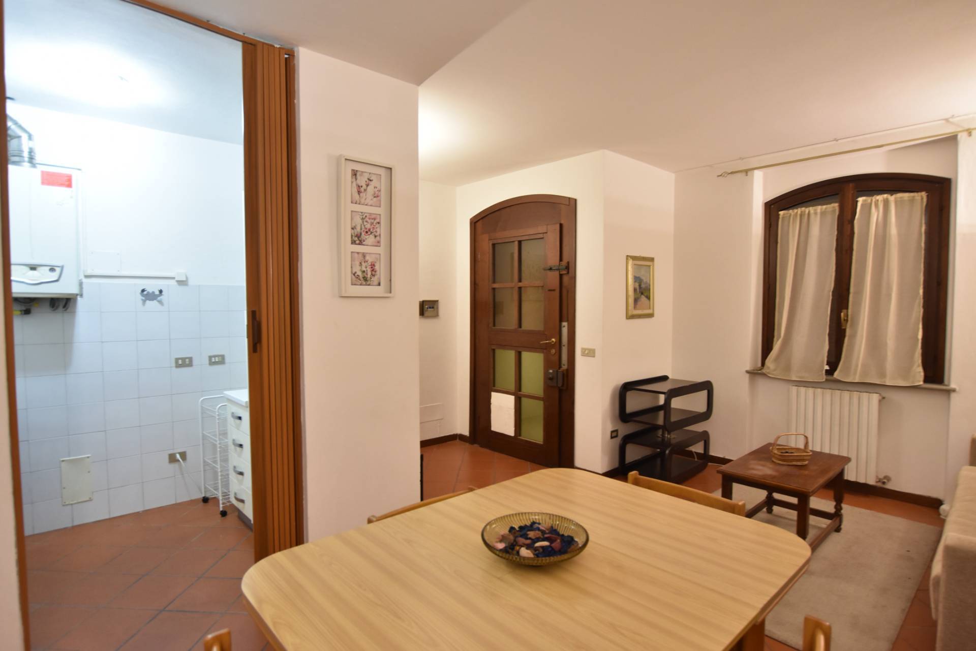 Limmobile si apre su un luminoso soggiorno con angolo cottura, camera matrimoniale e bagno finemente rifinito.