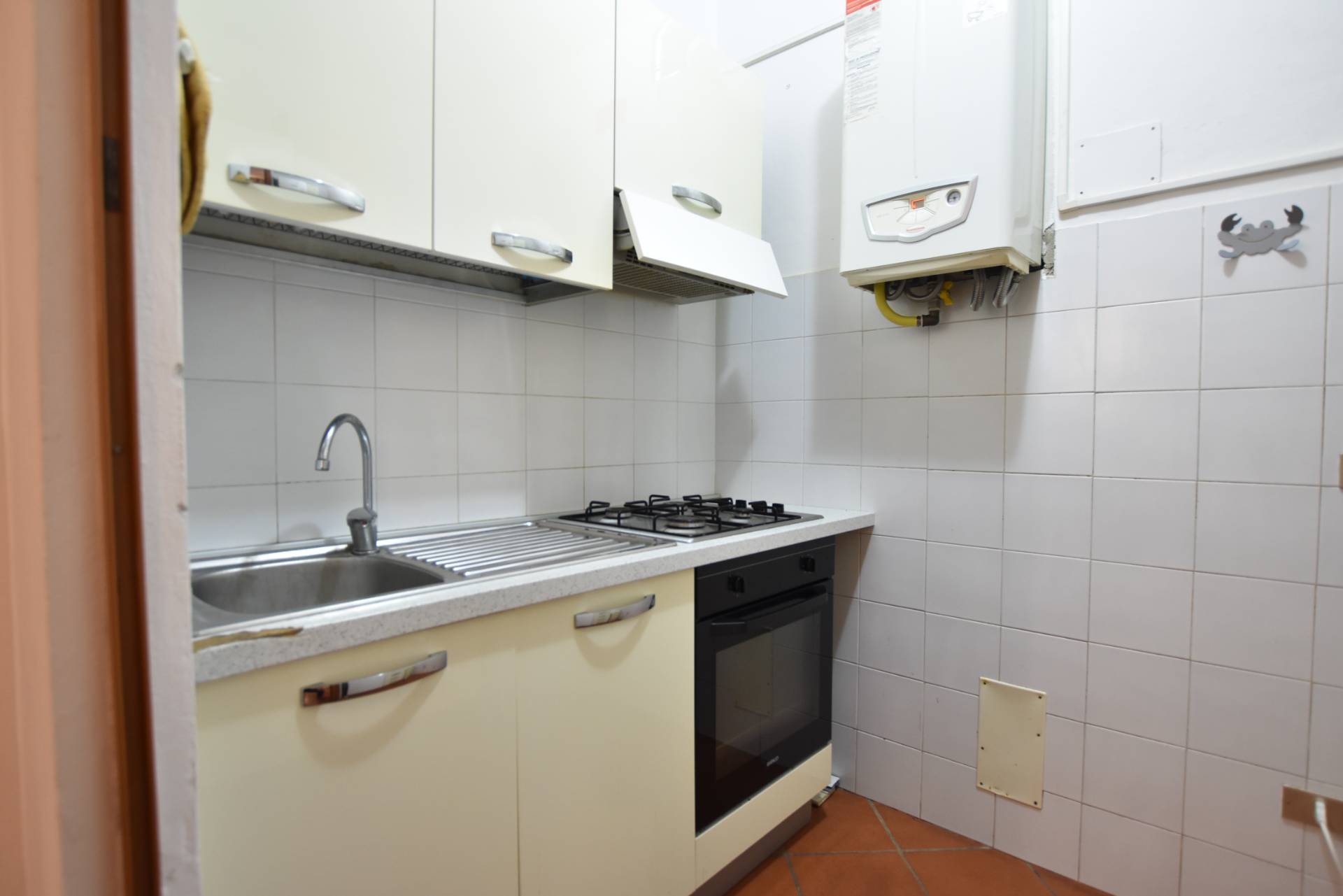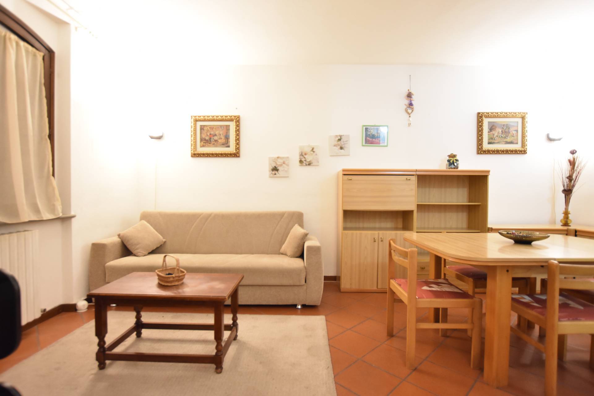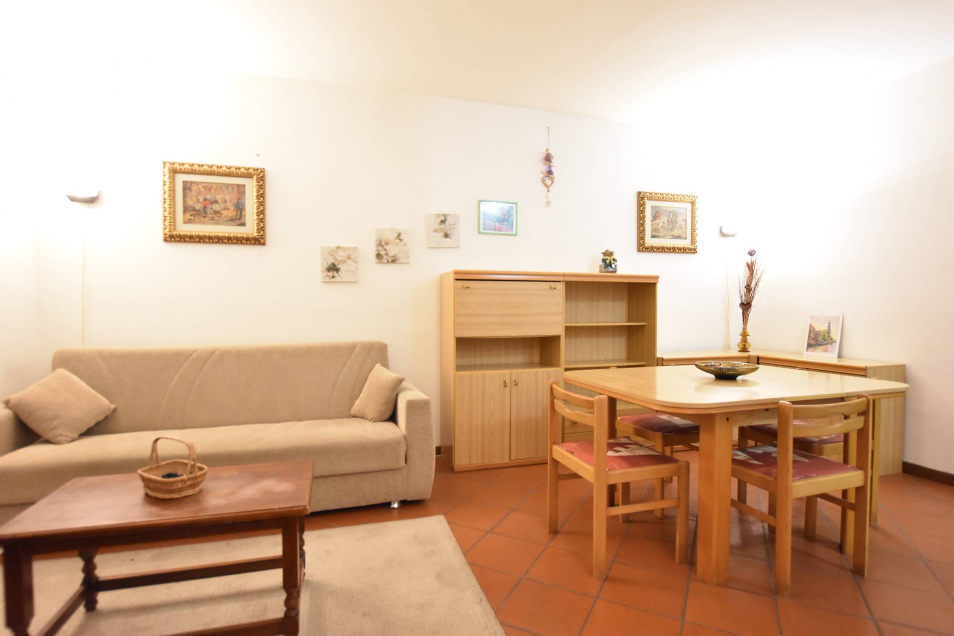 Limmobile si apre su un luminoso soggiorno con angolo cottura, camera matrimoniale e bagno finemente rifinito.