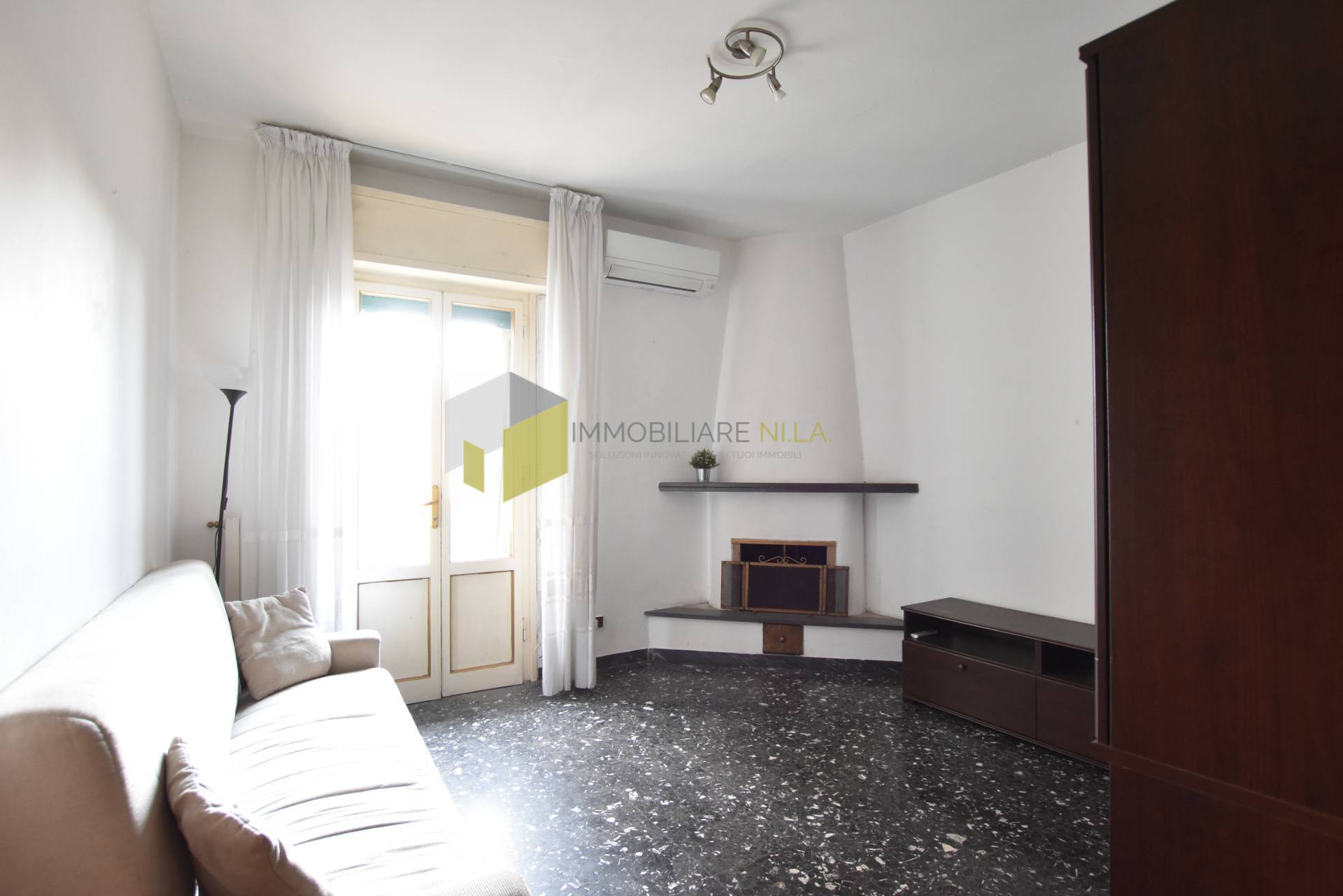 L'ingresso divide i vari ambienti della casa, dove troviamo una bella cucina con un grande ripostiglio, un ampio soggiorno con balcone e camino, eventualmente da poter utilizzare come seconda camera ed infine il disimpegno ci accompagna nella zone notte dove troviamo una comoda camera matrimoniale e il bagno dotato di doccia e finestra.