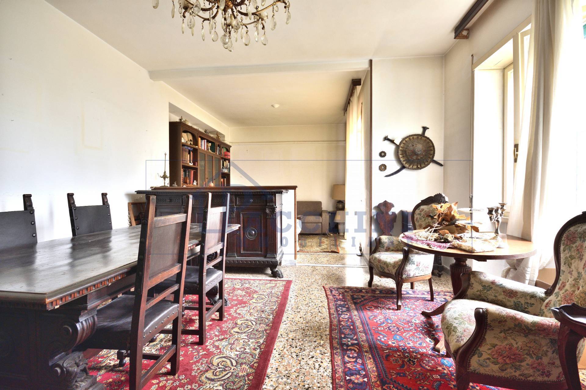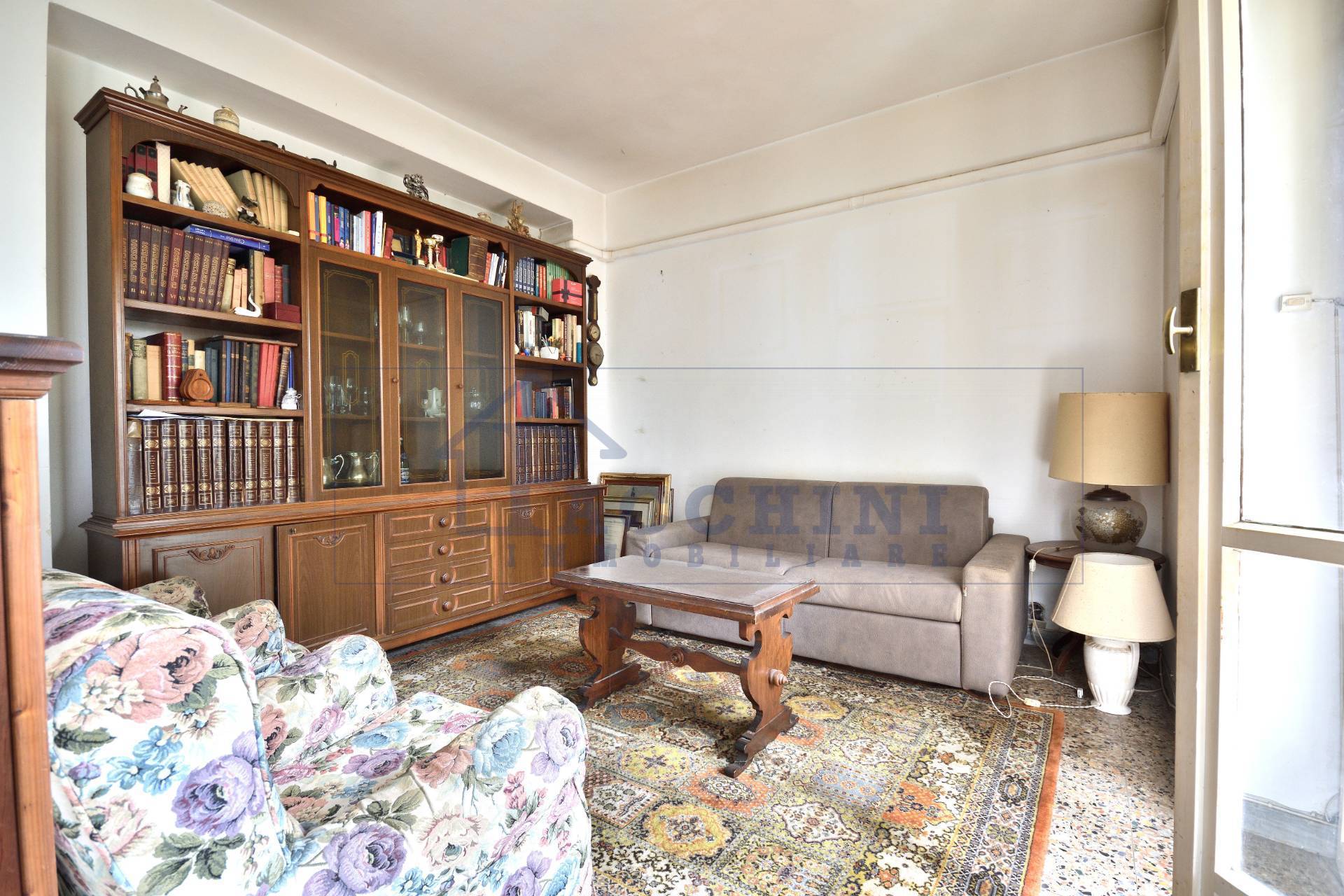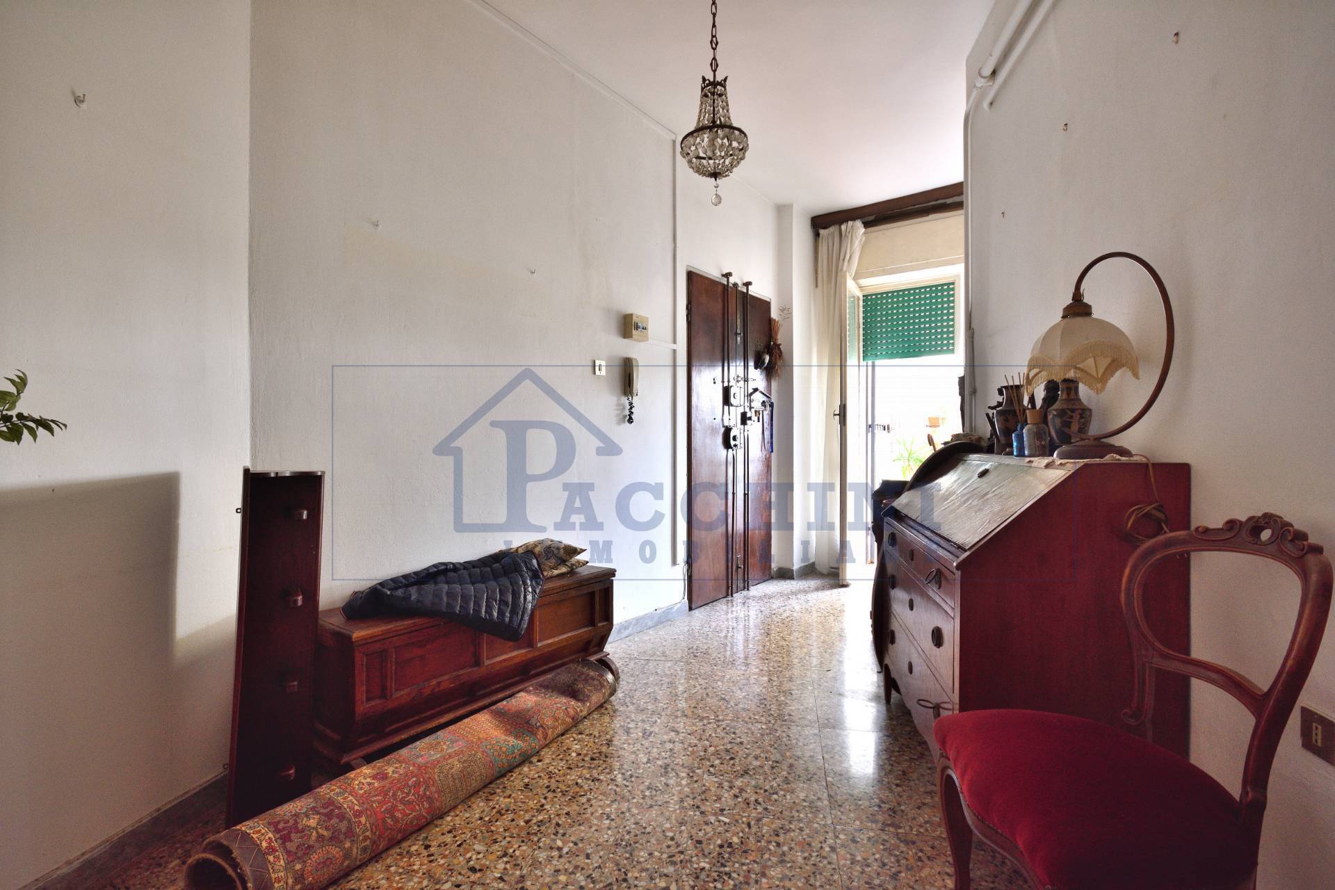 L'appartamento gode di una buona vista sui giardini interni ed composto da ampio ingresso tradizionale con terrazzina, sala , cucina con balcone, tre camere di cui una con balcone e bagno con finestra.