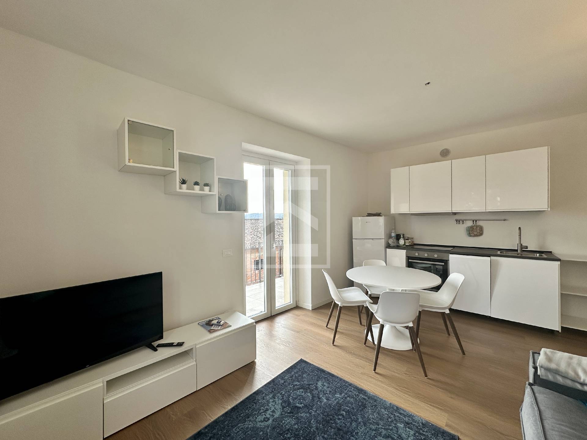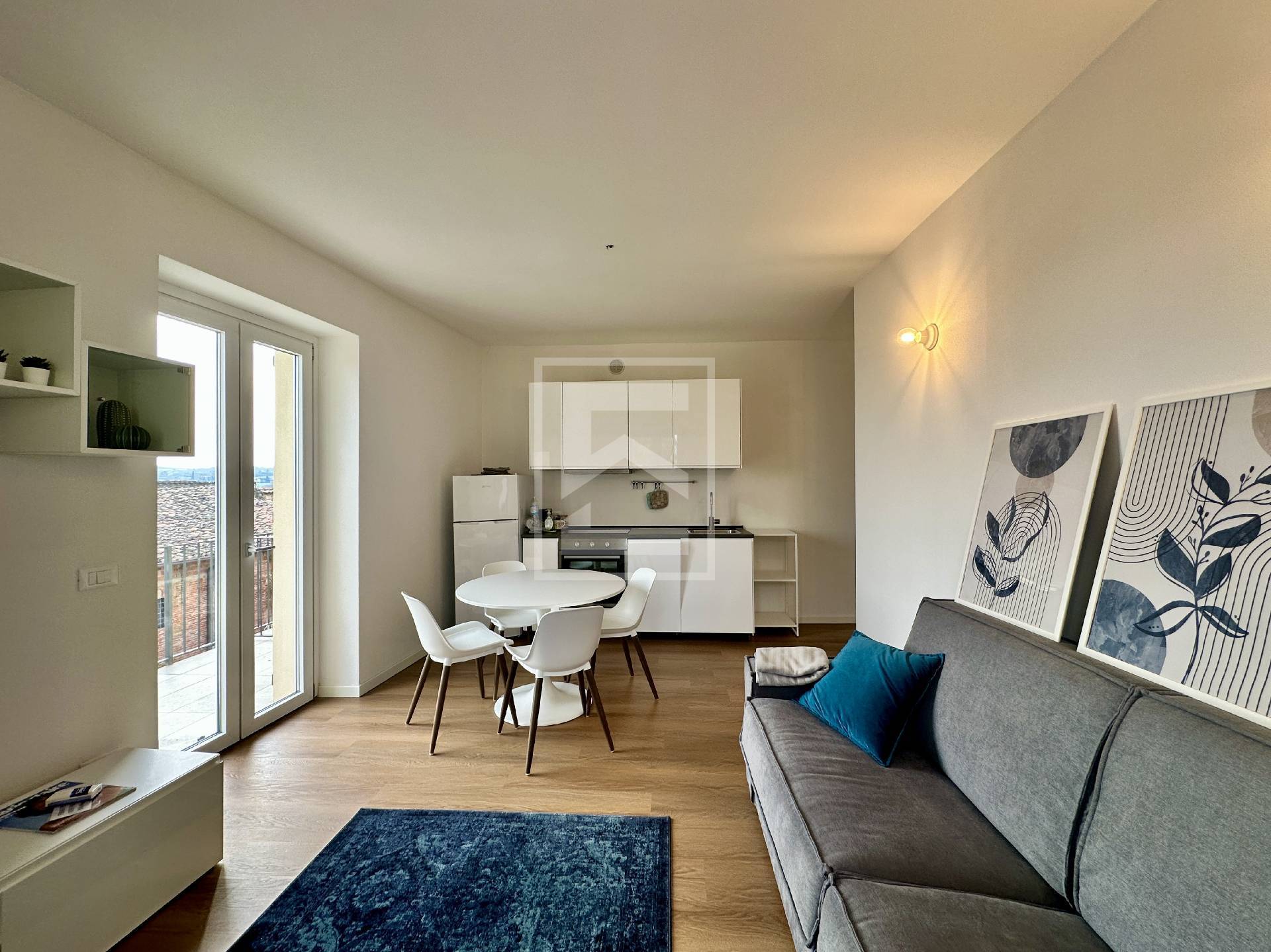 La zona giorno composta da soggiorno con cucina a vista con accesso diretto al balcone, uno spazio ideale per godere di momenti di relax allaperto immersi nella tranquillit del borgo.