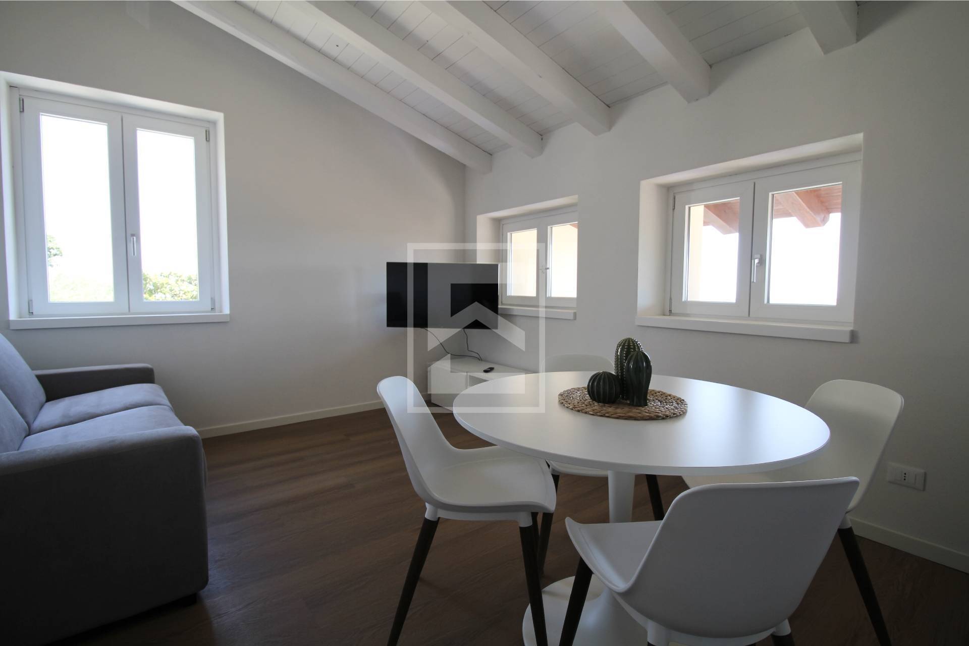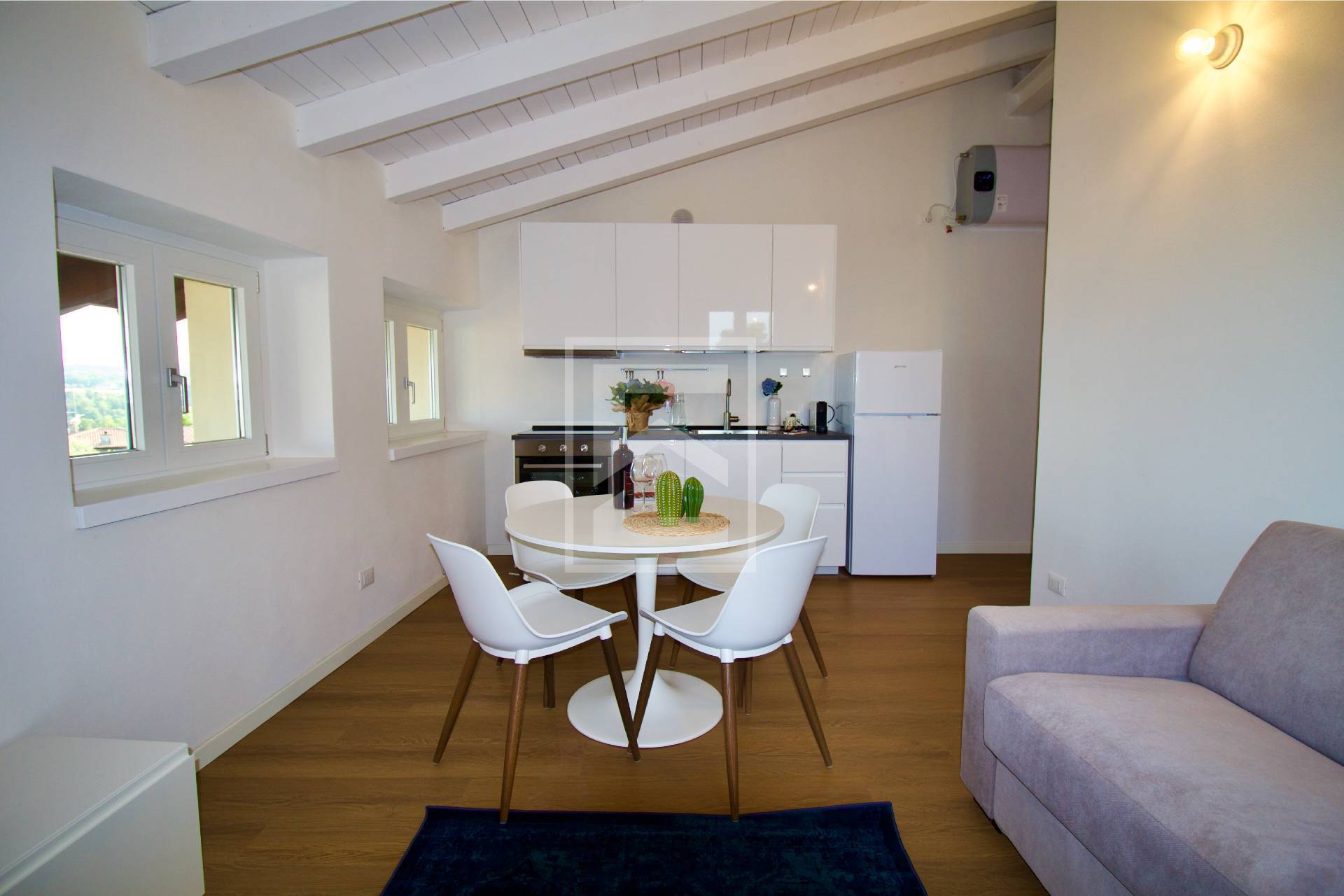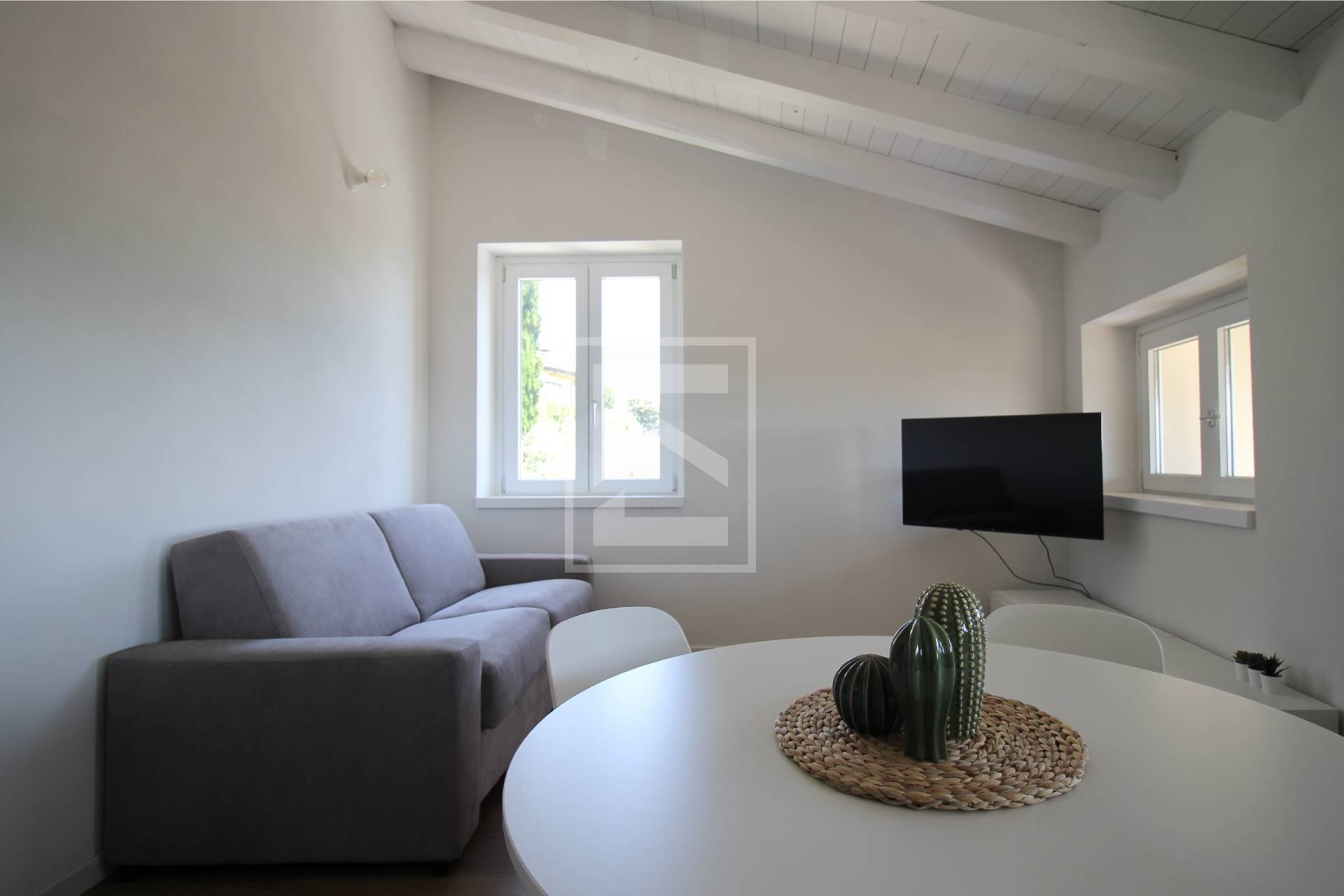 Limmobile composto da una luminosa zona giorno con soggiorno e cucina a vista, una camera matrimoniale e un bagno.