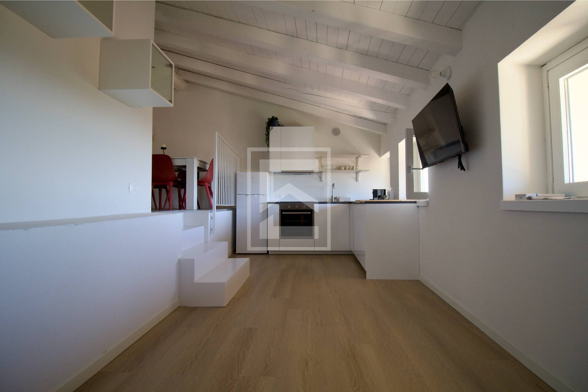 Gli spazi interni sono ben distribuiti e comprendono una zona giorno con soggiorno e cucina a vista, due camere da letto di cui una matrimoniale e un bagno.