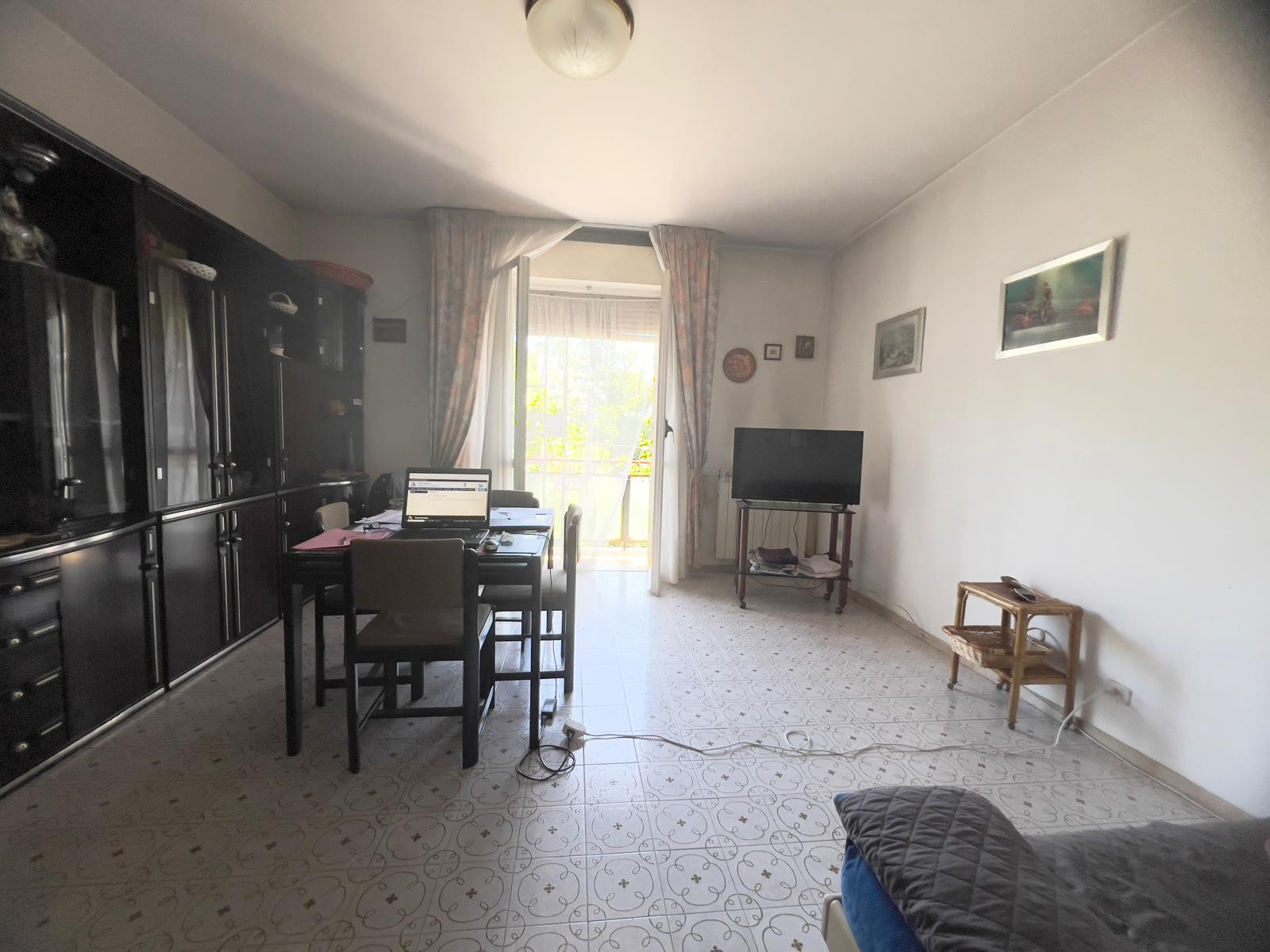 L'immobile composto da ingresso, salone con uscita al balcone, due ampie camere finestrate, cucina abitabile con accesso al balcone di servizio, ripostiglio e servizio finestrato.