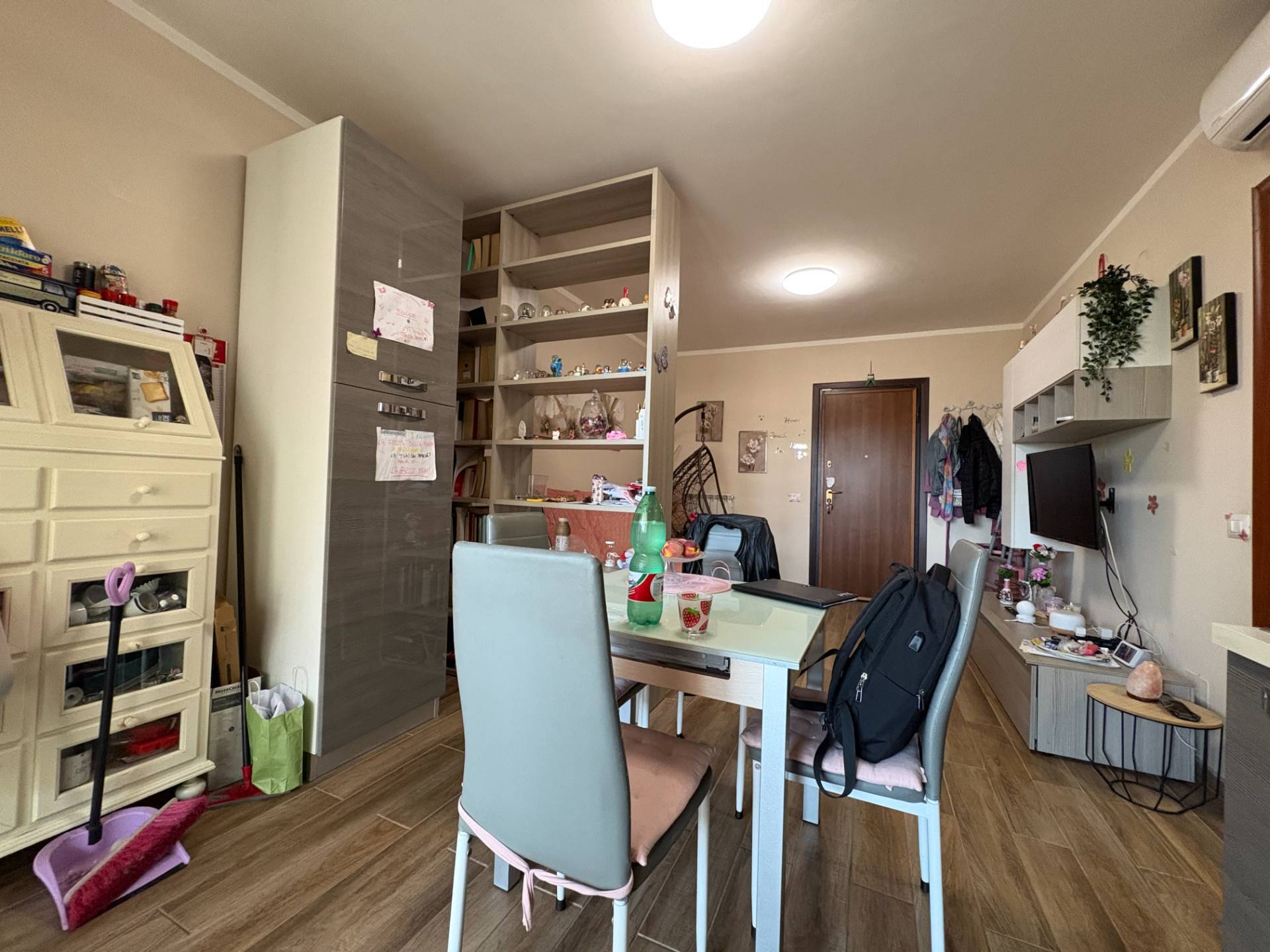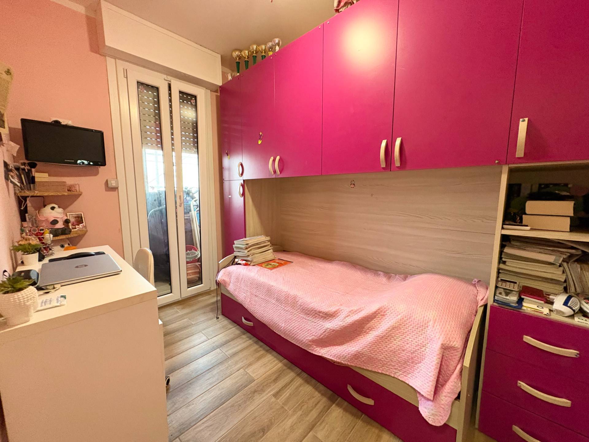 L'immobile composto da salone con angolo cottura con uscita al terrazzo abitabile, camera da letto con finestra, cameretta con uscita al balcone e servizio finestrato.