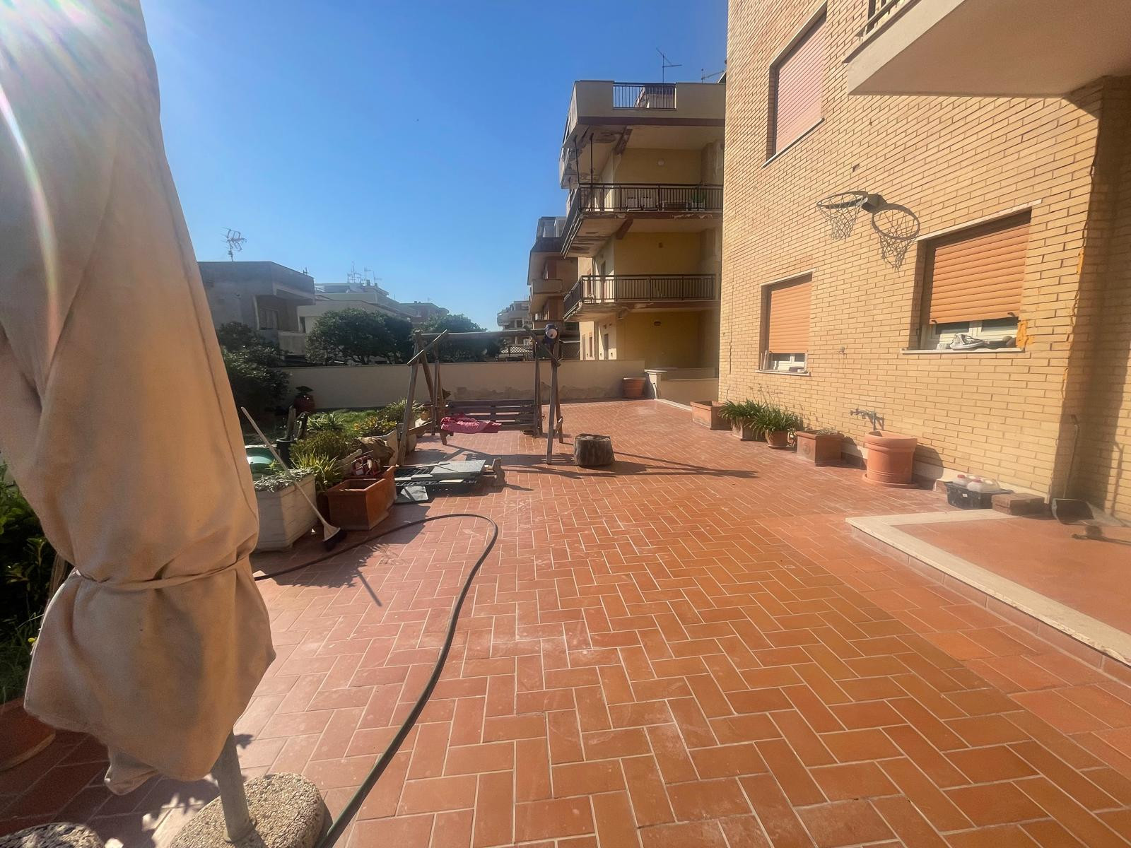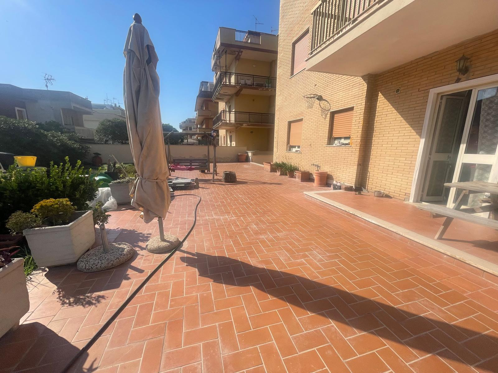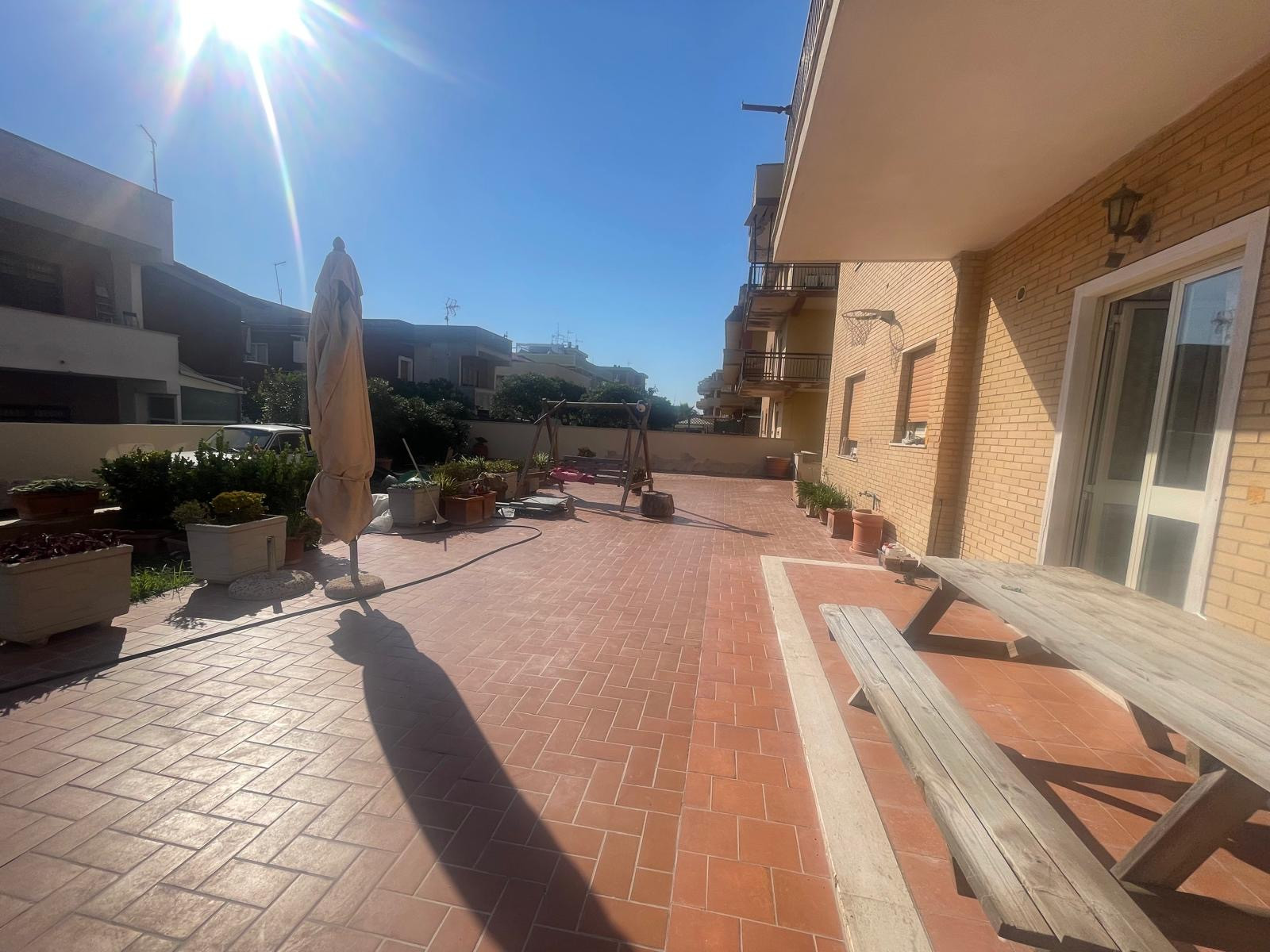Torvaianica, precisamente in via Rumenia, appartamento completamente ristrutturato con vista mare, posto al piano terra con ingresso indipendente, composto da luminoso salone con angolo cottura dotato di climatizzatore e porta finestra con uscita ad un grande giardino, due camere matrimoniali con riscaldamento a pavimento, cameretta e due servizi finestrati con vasca e box doccia.