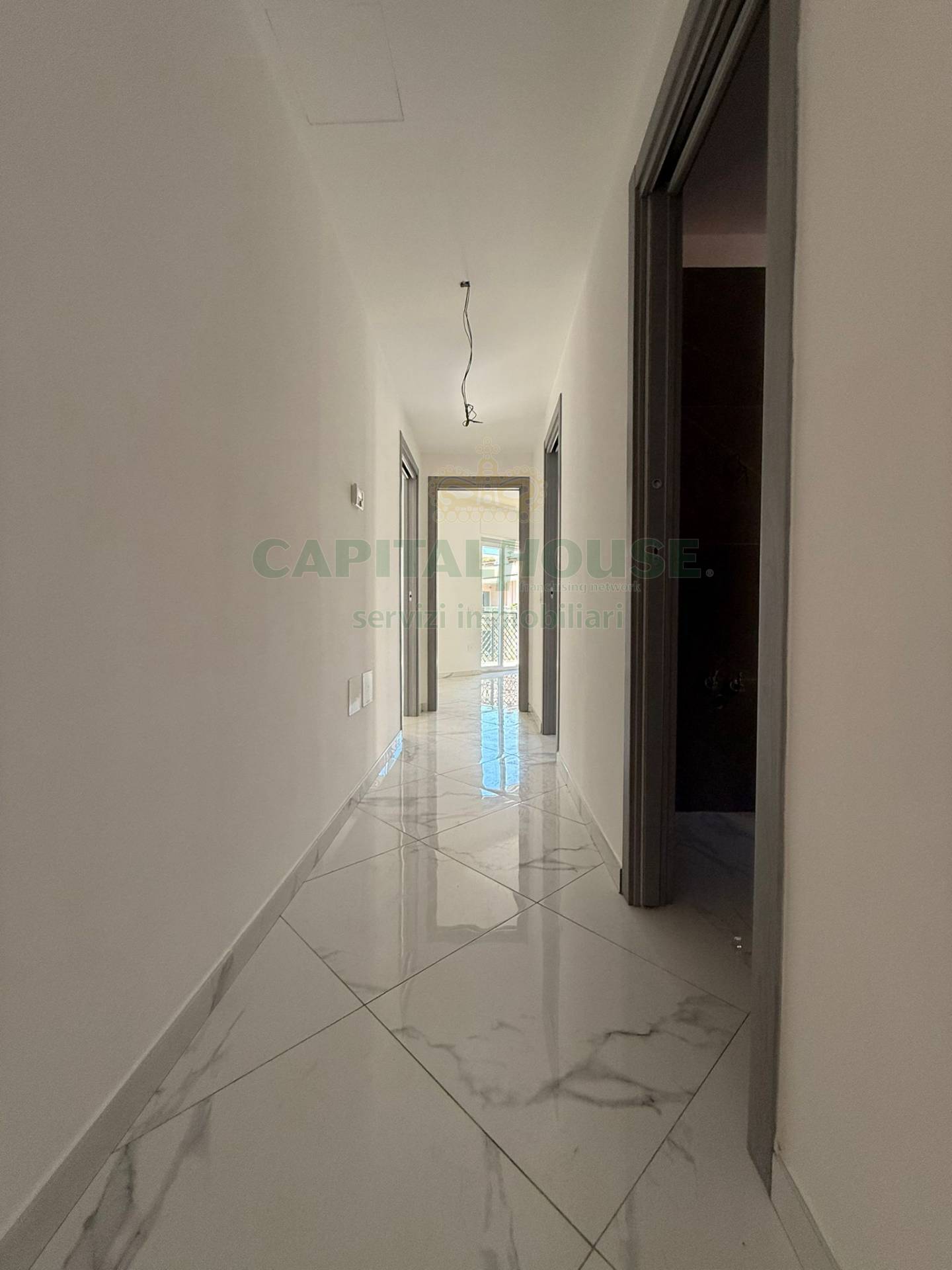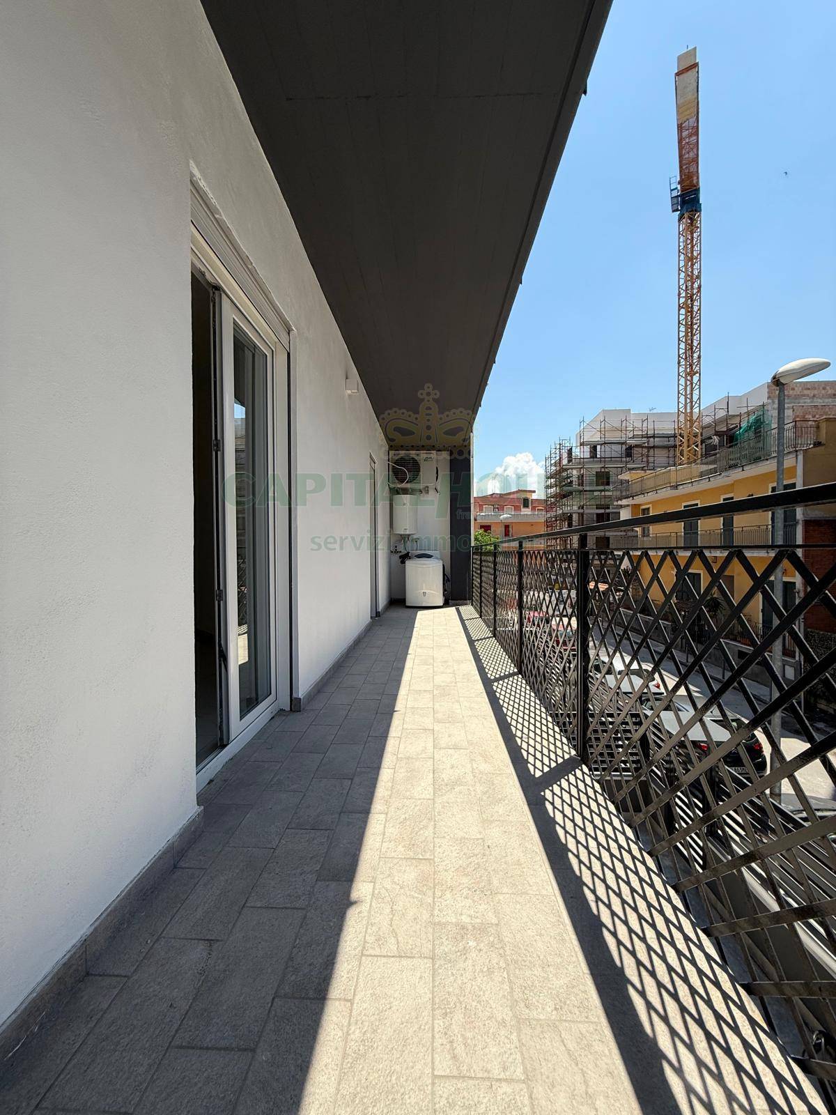 ° Stato: Nuova costruzione (mai abitato), semi arredato (con cameretta, e camera matrimoniale). ° Classe energetica: A ° Esposizione: doppia ottima luminosit naturale ° Stabile moderno e signorile Composizione interna: Ingresso su ampio salone con angolo cottura Disimpegno Camera da letto matrimoniale Seconda camera da letto Bagno padronale con rifiniture moderne Bagno di servizio Ampie balconate su entrambi i lati ° Posizione strategica: a pochi metri dal parcheggio del Bar Leopardi e dagli uffici INPS, in zona servita da scuole, negozi, uffici pubblici, bar e collegamenti.