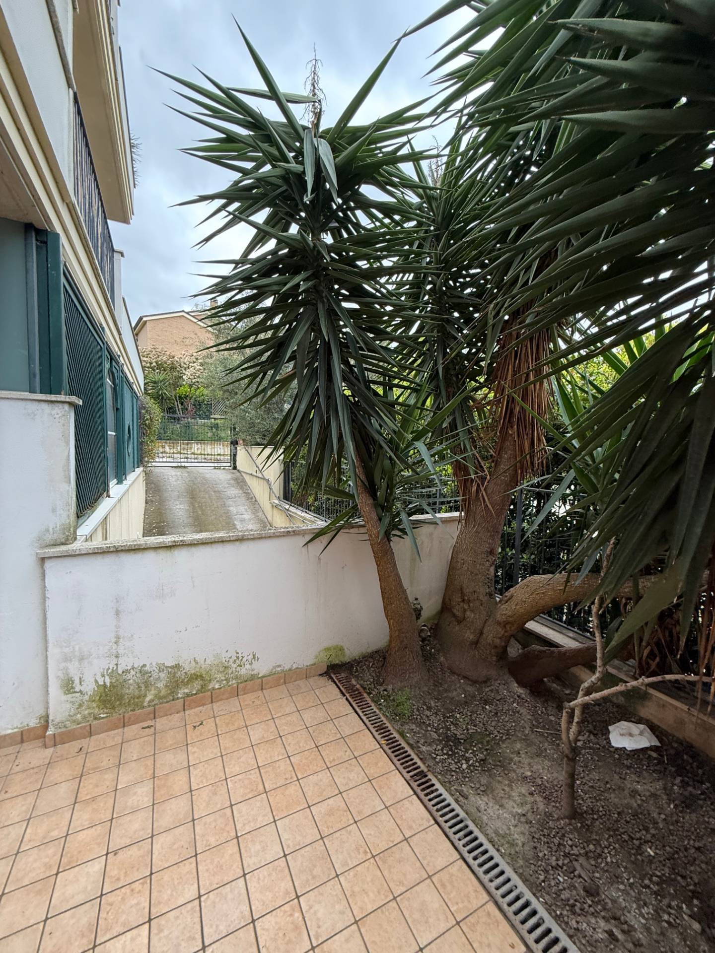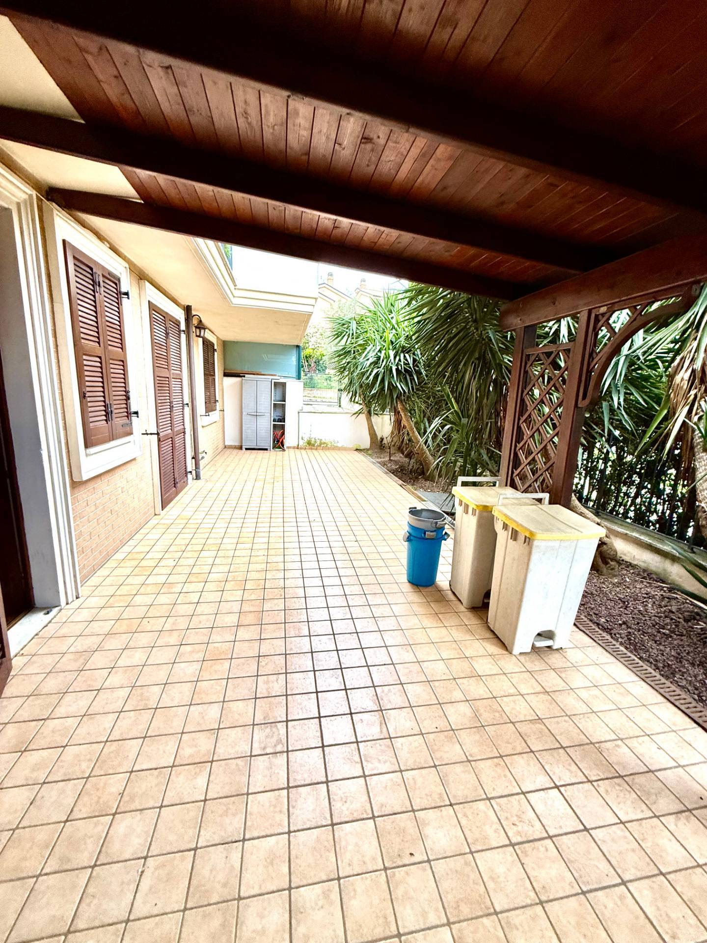 Piano terra mq 75 composto da living e angolo cottura, esterno corte piastrellata mq 60 con veranda in legno.