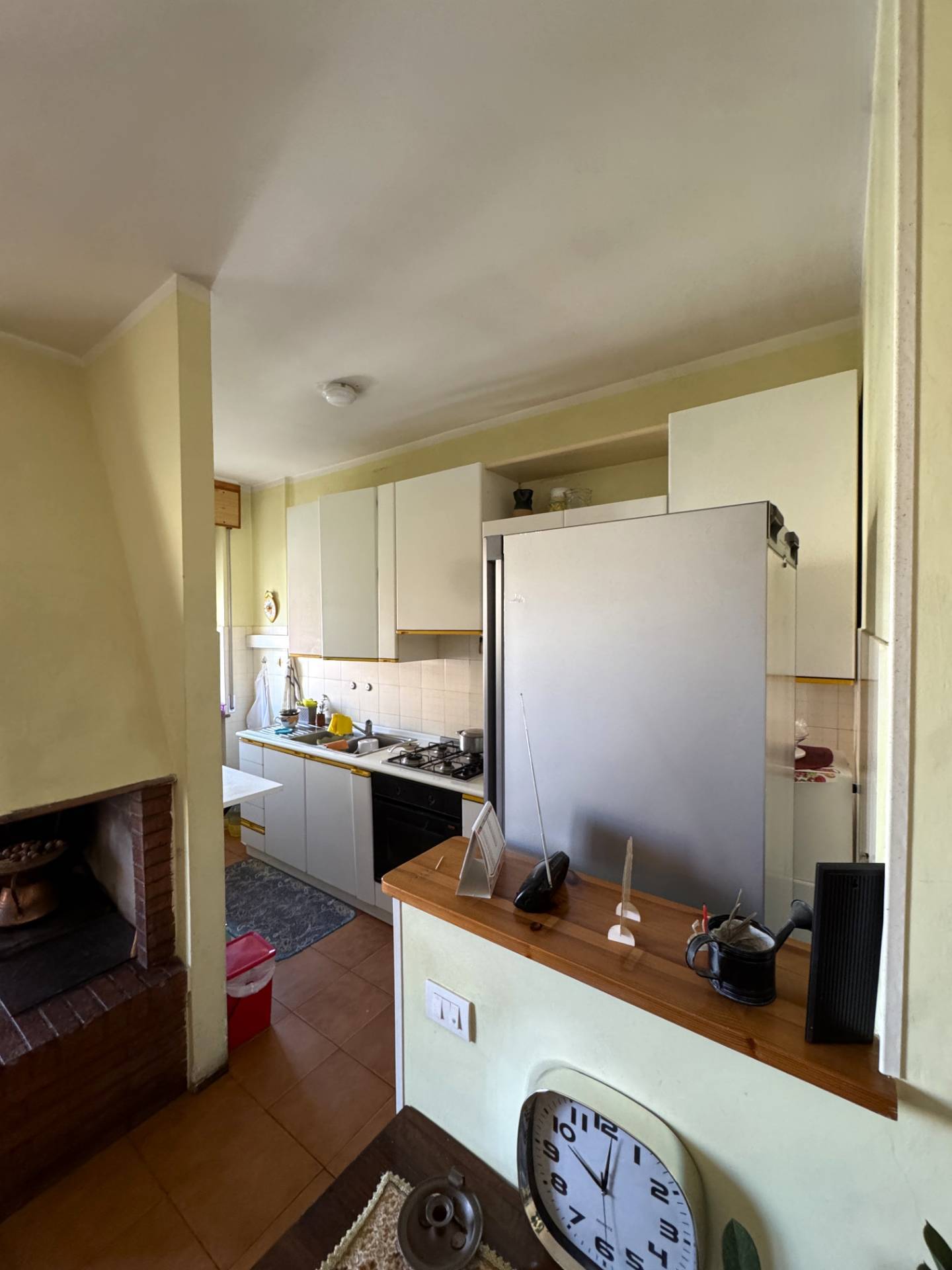 L'immobile si compone di ingresso sull'ampio e luminoso soggiorno con camino, angolo cottura separato ed accesso diretto al terrazzo abitabile, disimpegno notte che comprende una camera padronale, ulteriori due camere doppie, tutte servite dal balcone perimetrale, e bagno con finestra, completo di cabina doccia, a servizio della zona notte.