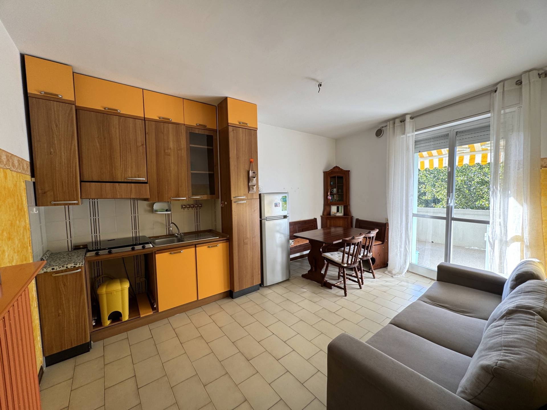 La soluzione abitativa, posta al piano terzo, si presenta in buone condizioni d'uso e si compone di ingresso, soggiorno con cucina a vista e terrazzino a servizio, disimpegno notte che comprende una camera matrimoniale, seconda camera, entrambe servite da terrazzo, e bagno con finestra.