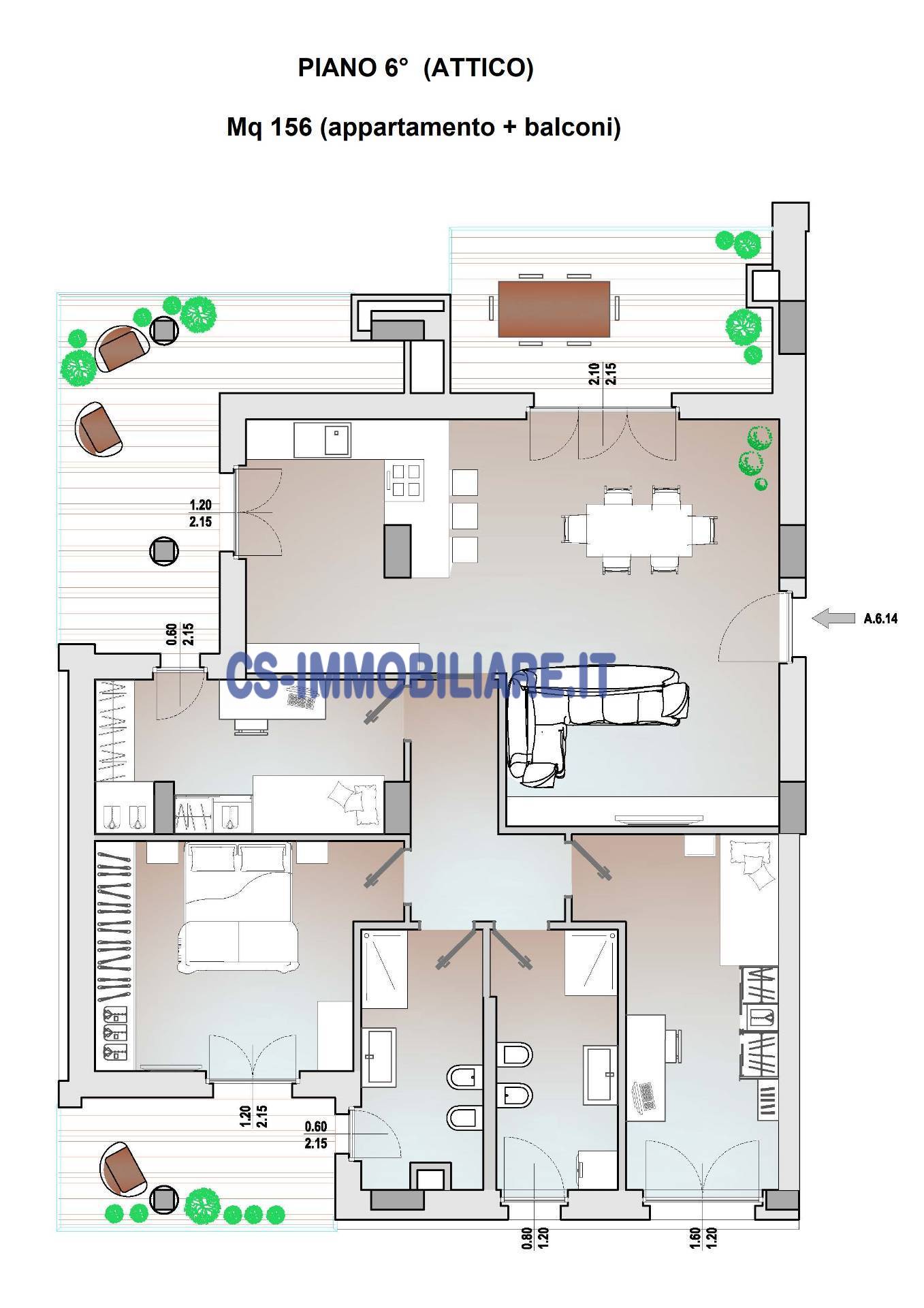 Si propone in Vendita, appartamento sito al 6° ed ultimo piano (attico) mq 158 totali (appartamento + balconi) in corso di costruzione, composto da: salone con cucina a vista, disimpegno, 3 camere, 2 bagni, 3 ampi balconi.