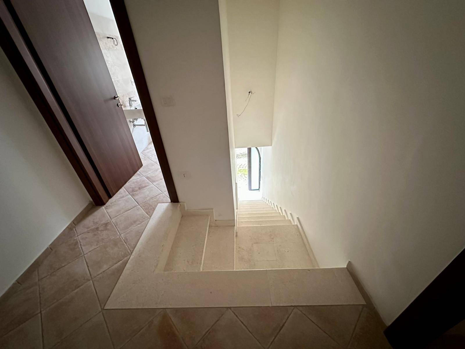 La soluzione, al piano terra, ci accoglie con un ingresso indipendente ed una cantina.