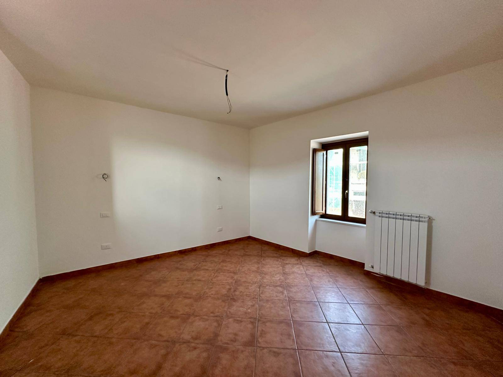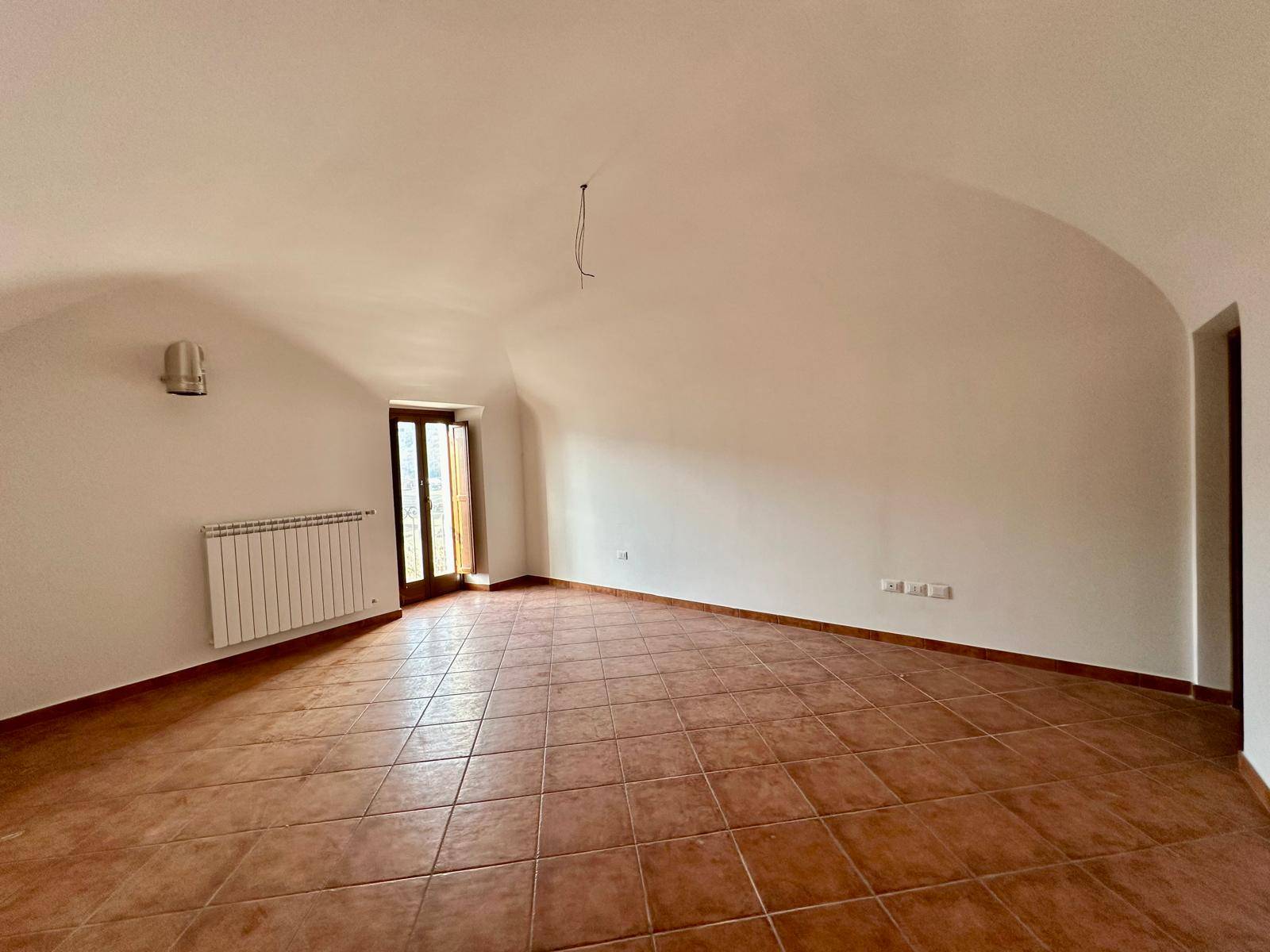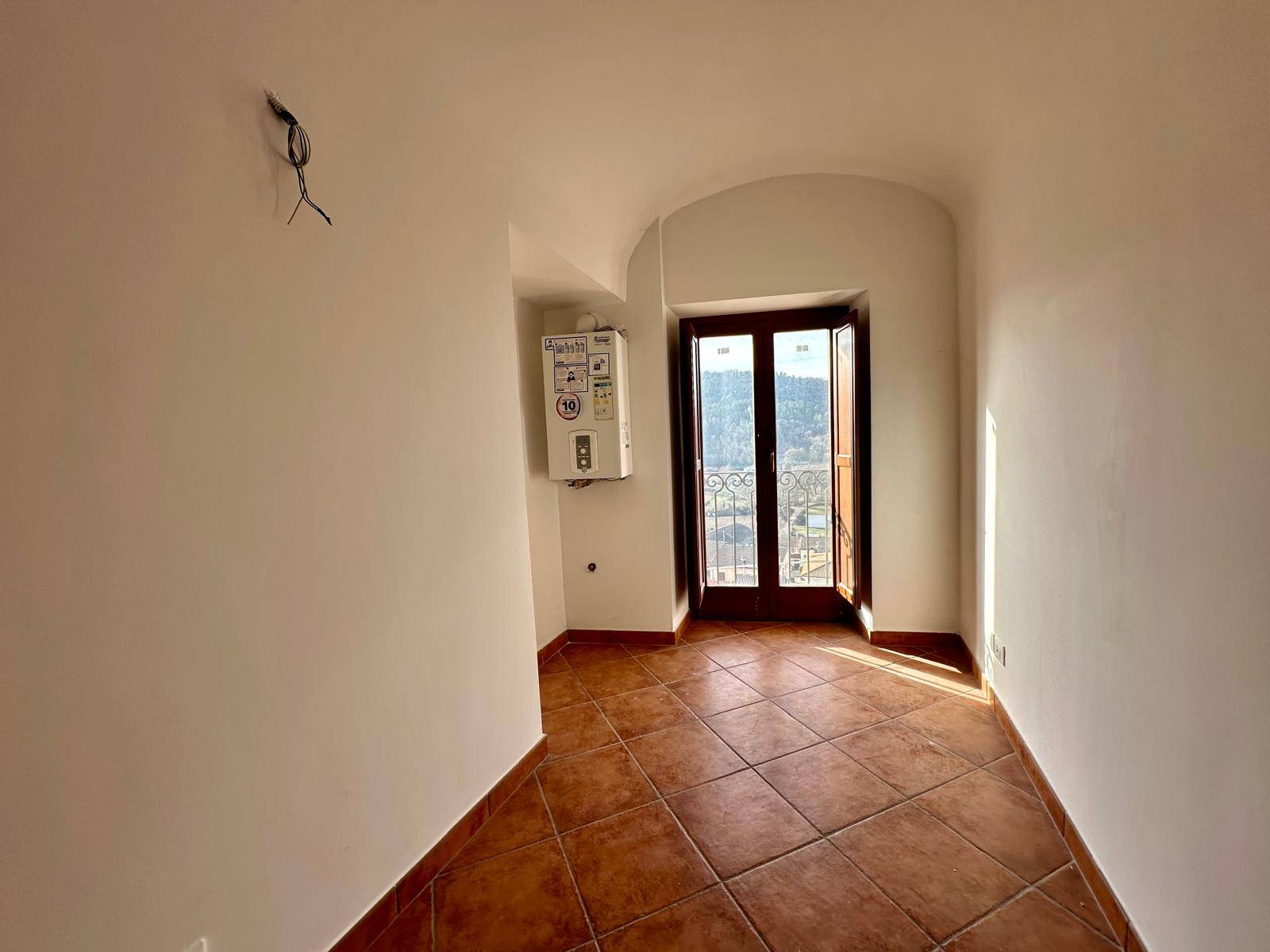 La soluzione ci accoglie con un ingresso comune ad altre due unit immobiliari e si compone di cucina abitabile, soggiorno con canna fumaria, cucinotto, entrambi serviti da balcone, un ripostiglio sottoscala e bagno.